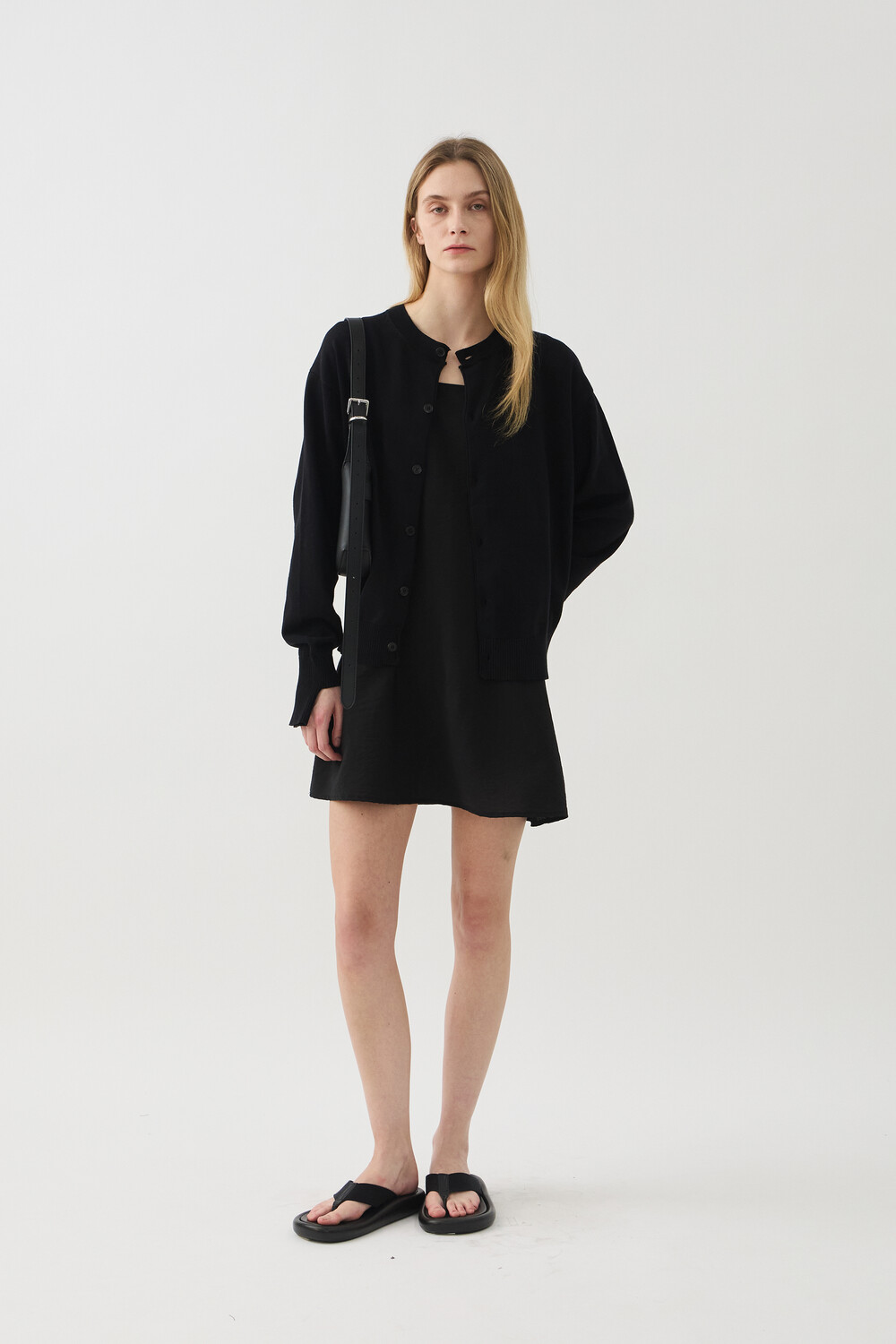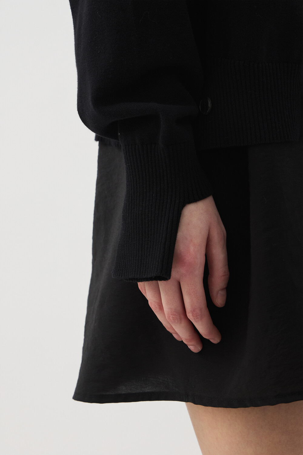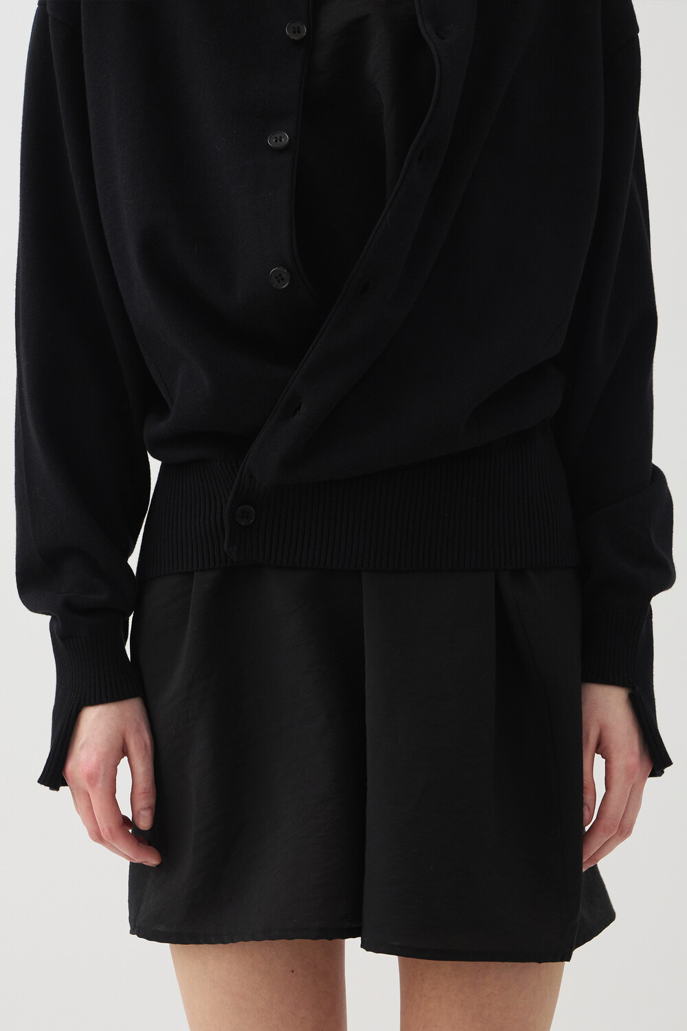 SLEEVE-CUT FINE COTTON CARDIGAN - BLACK (W)