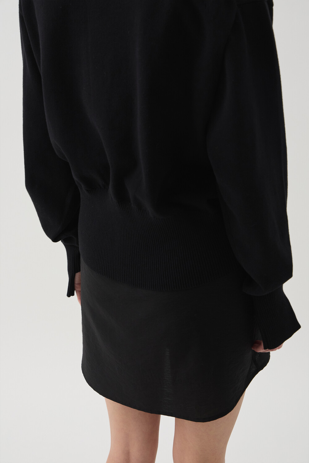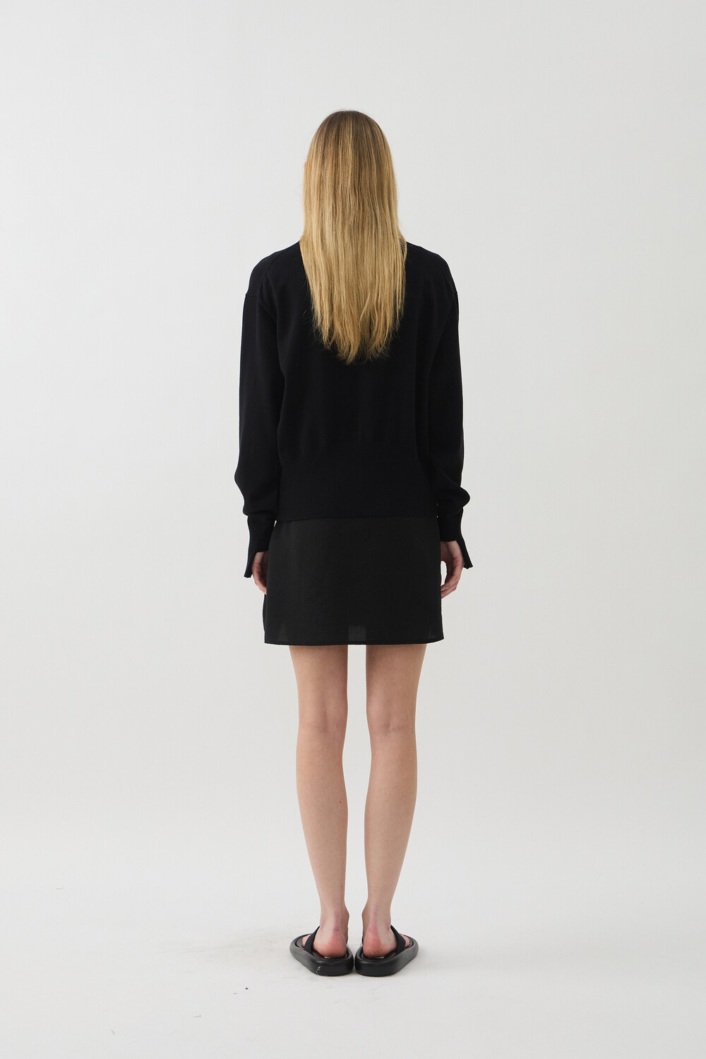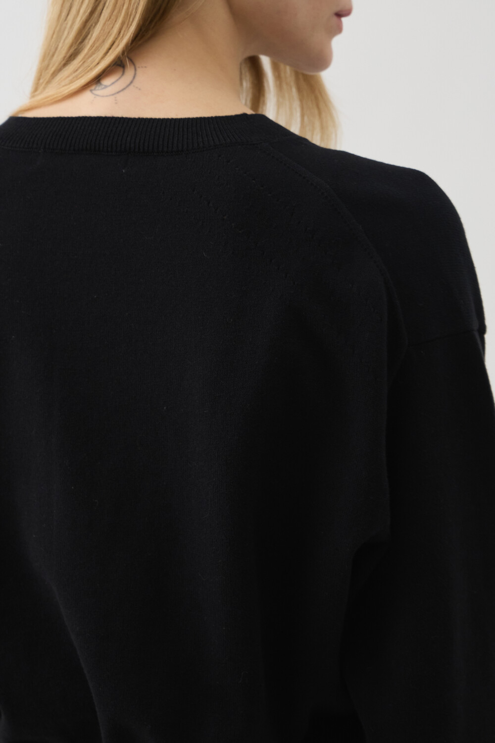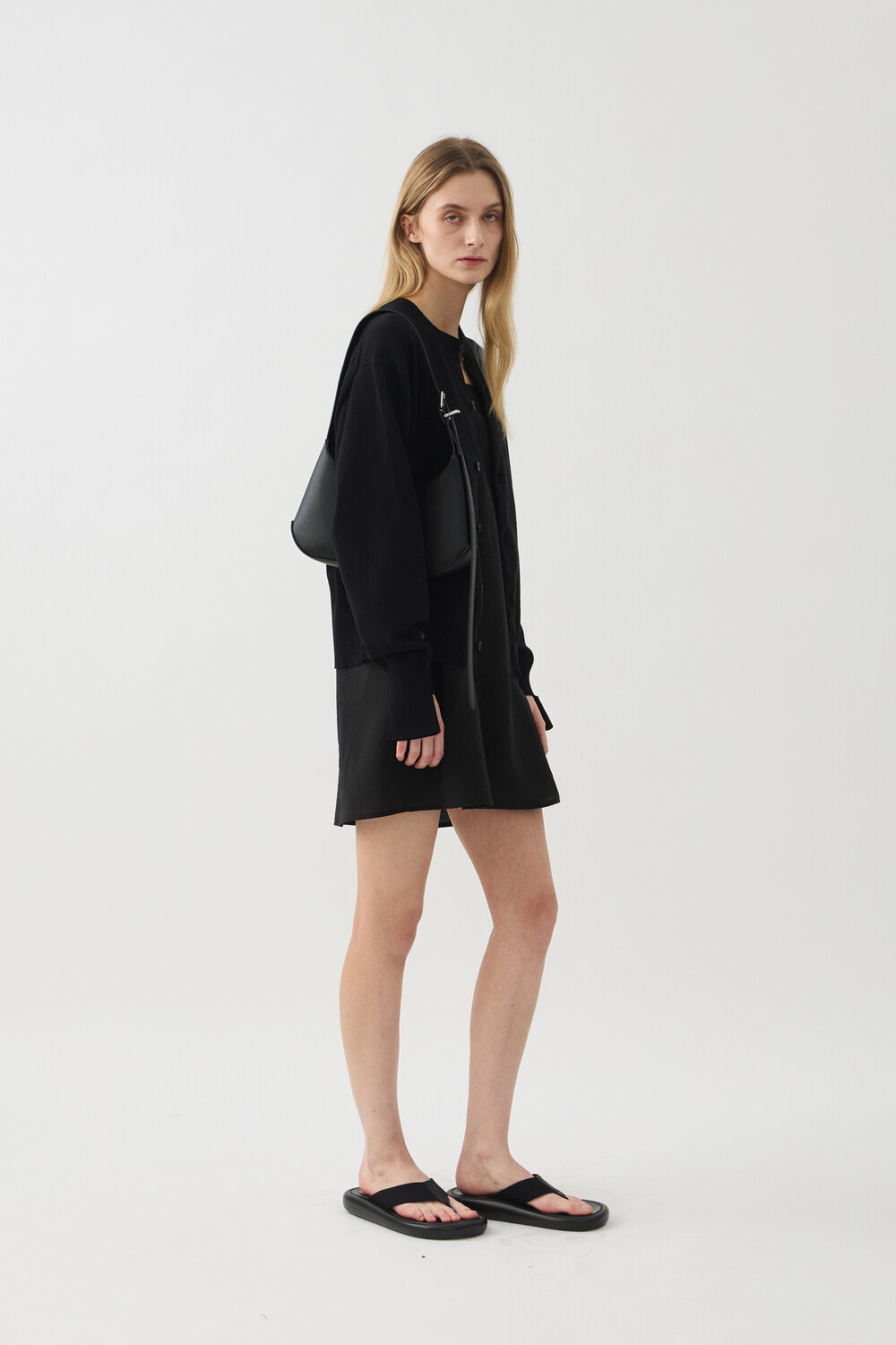 SLEEVE-CUT FINE COTTON CARDIGAN - BLACK (W)