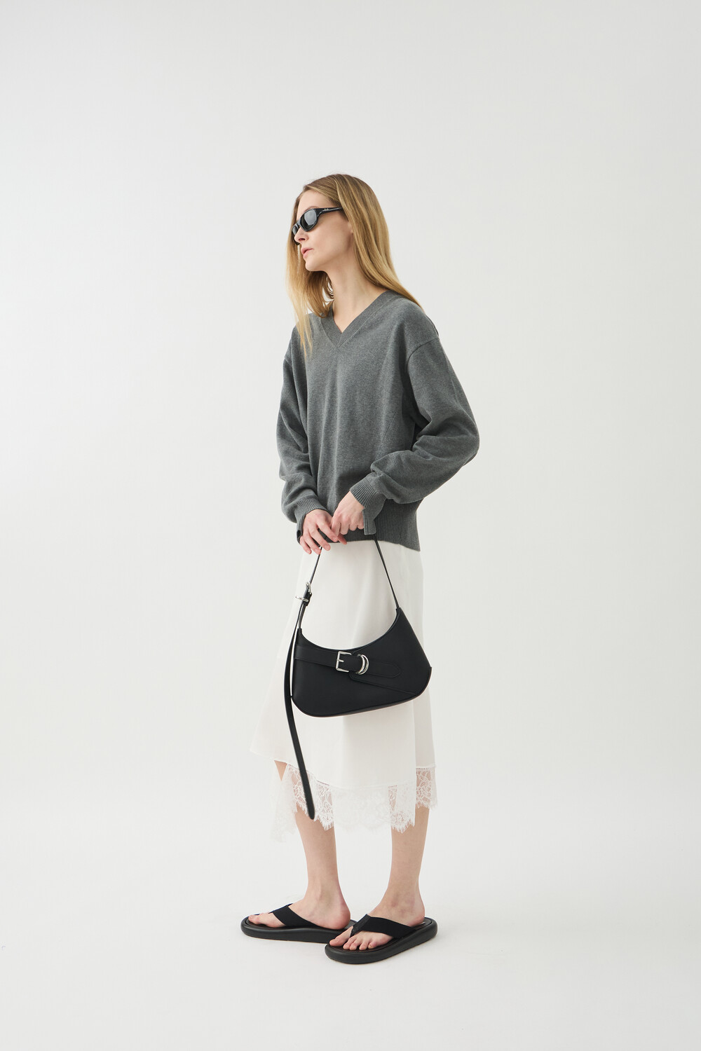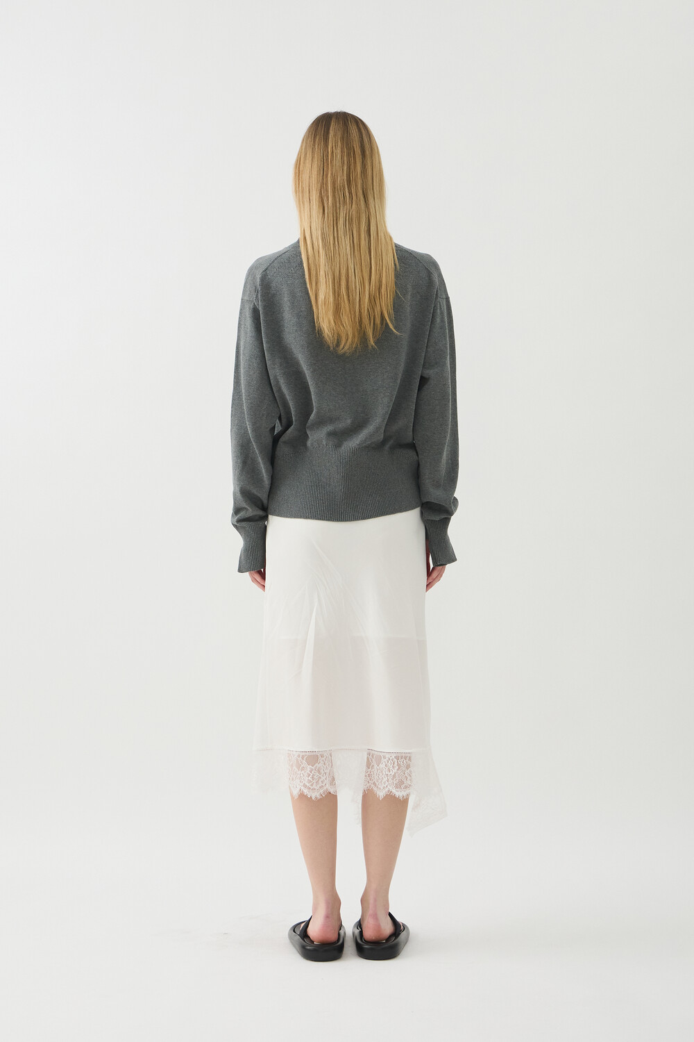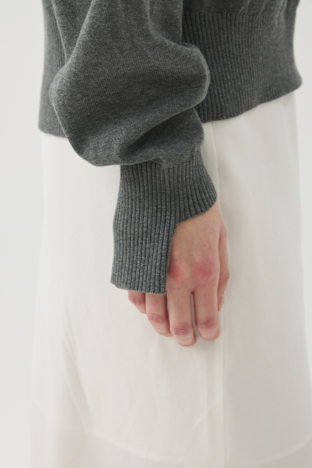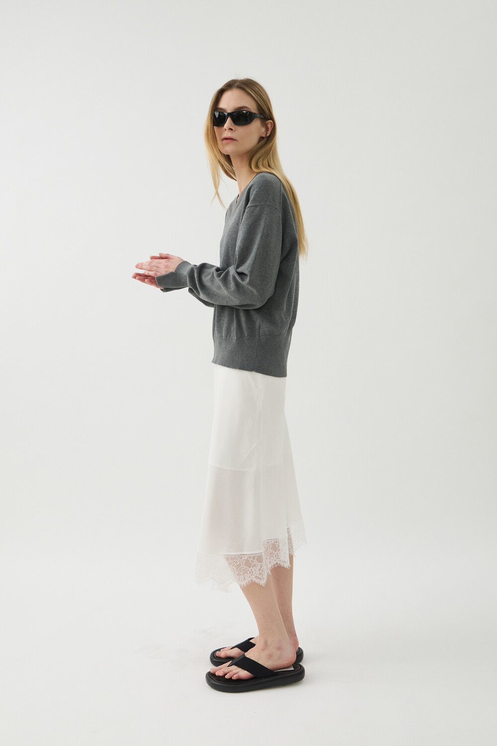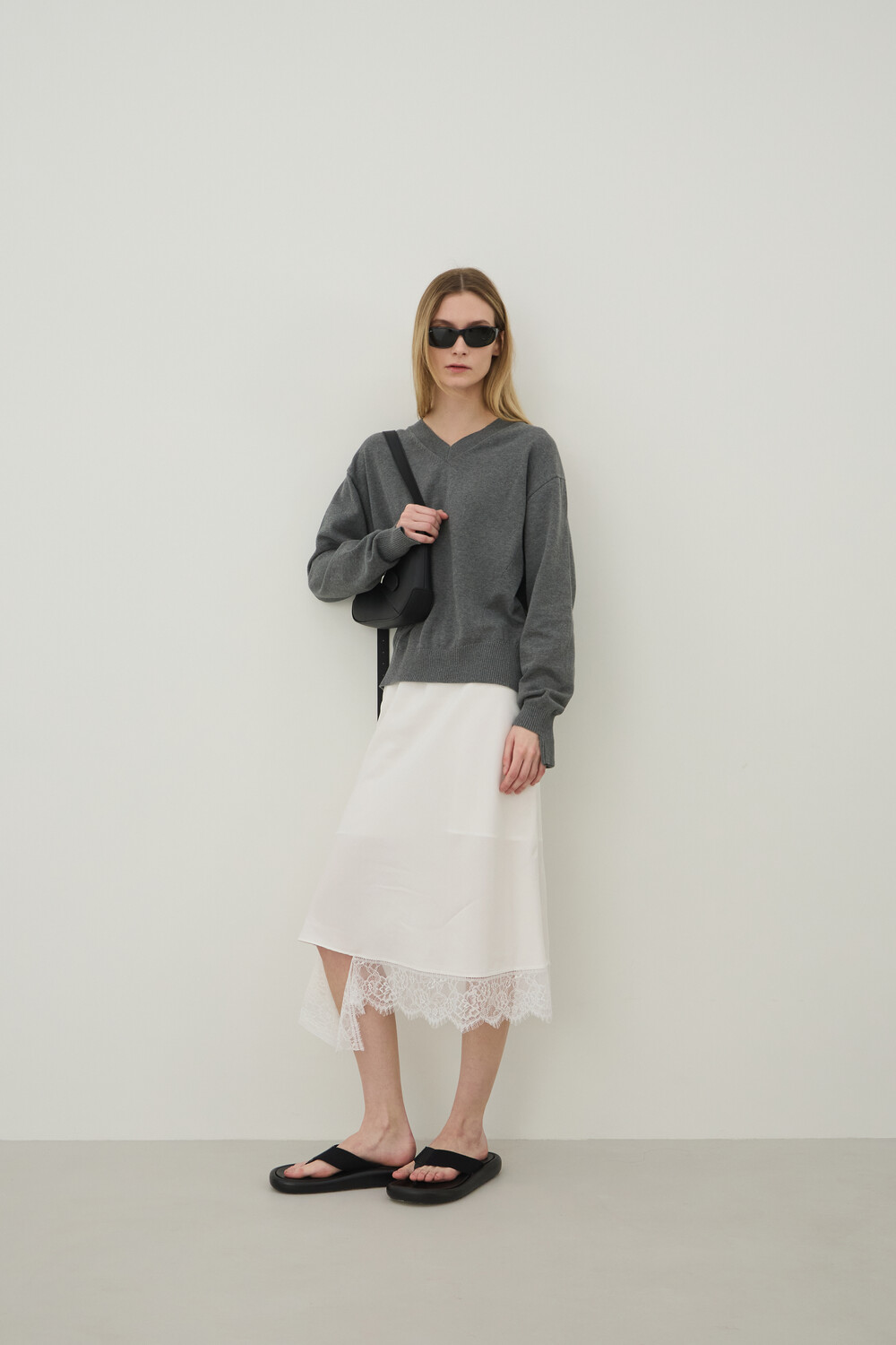 SLEEVE-CUT FINE COTTON V NECK SWEATER - MELANGE GREY (W)