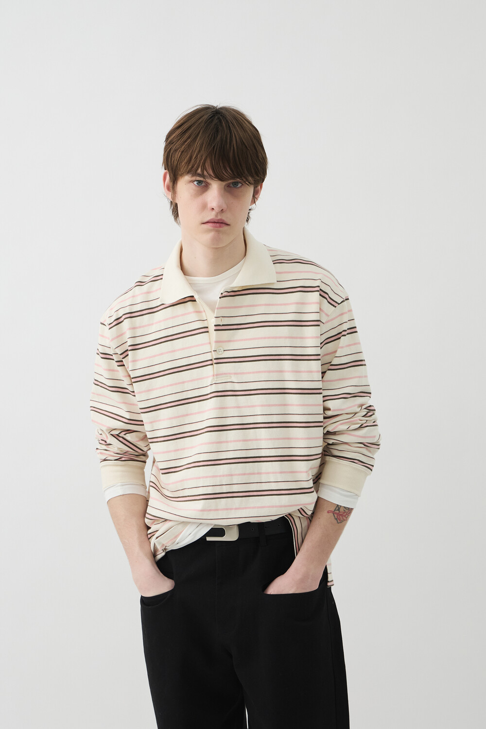 [RESTOCK] STRIPED COTTON POLO - ECRU