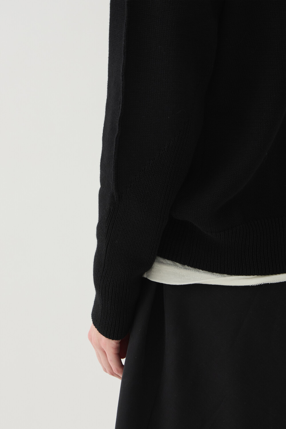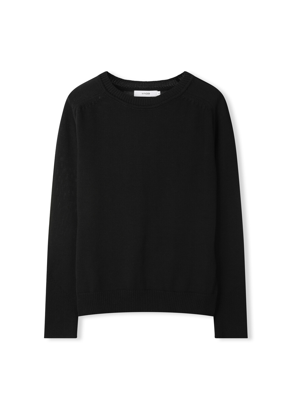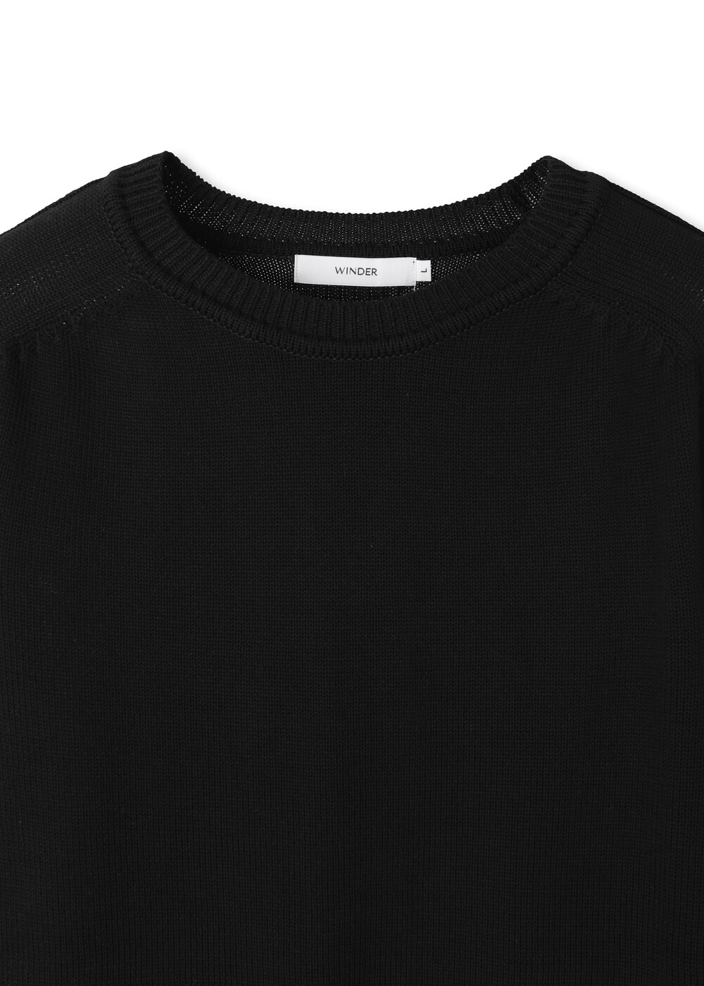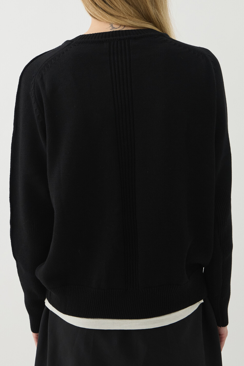 PINTUCK COTTON RAGLAN SWEATER - BLACK (W)