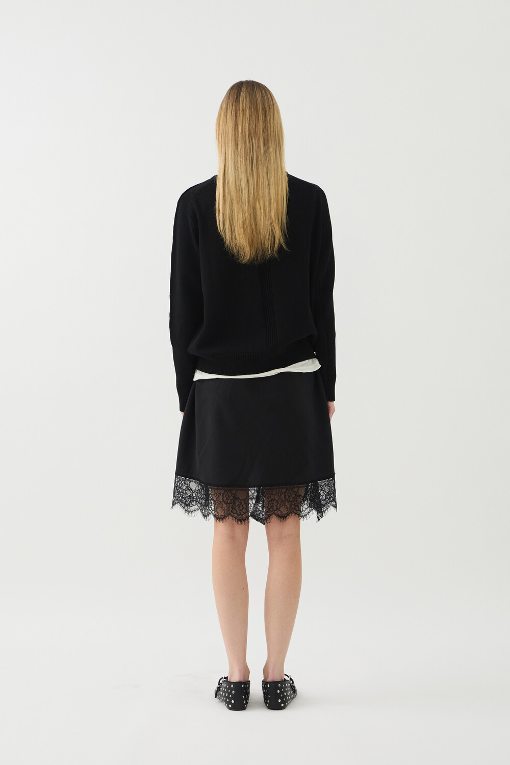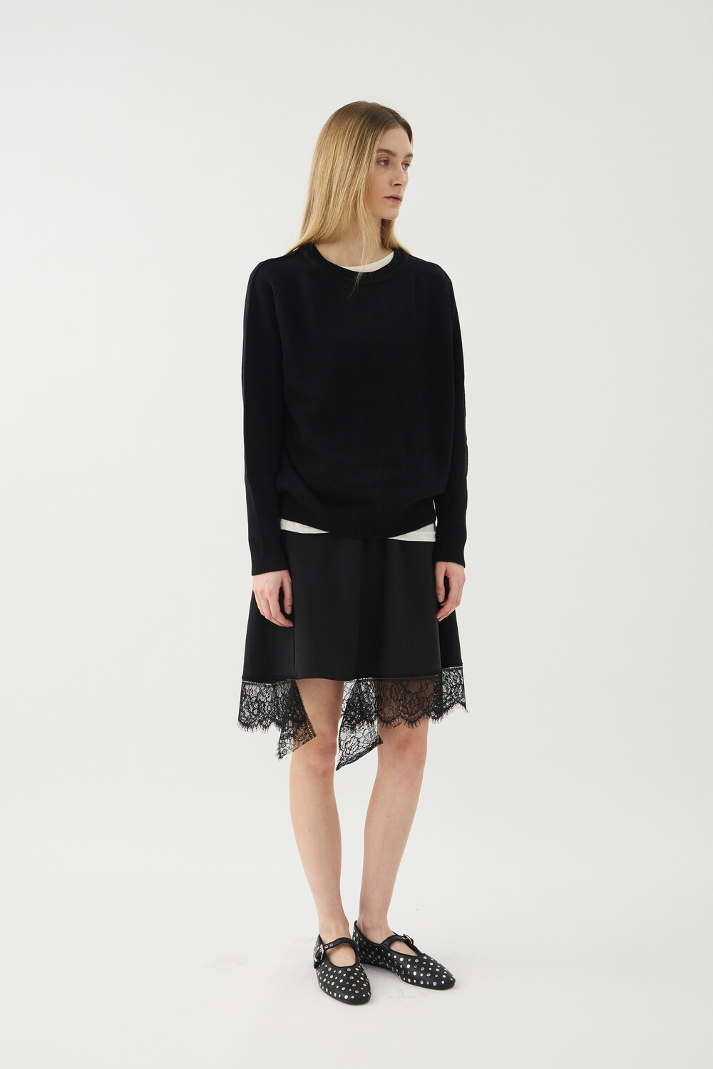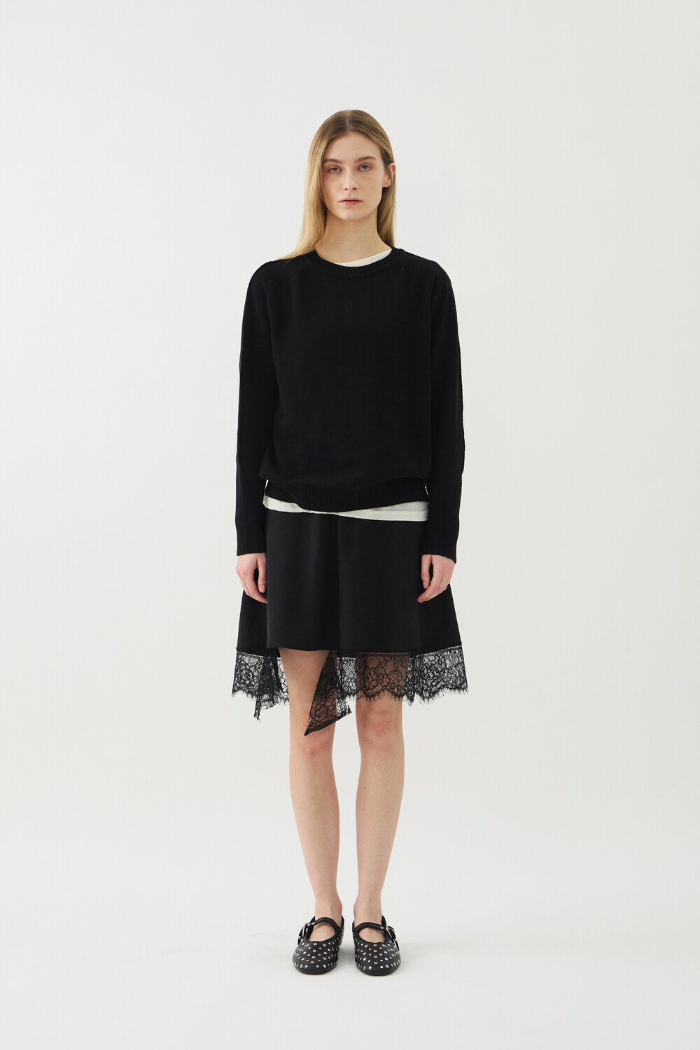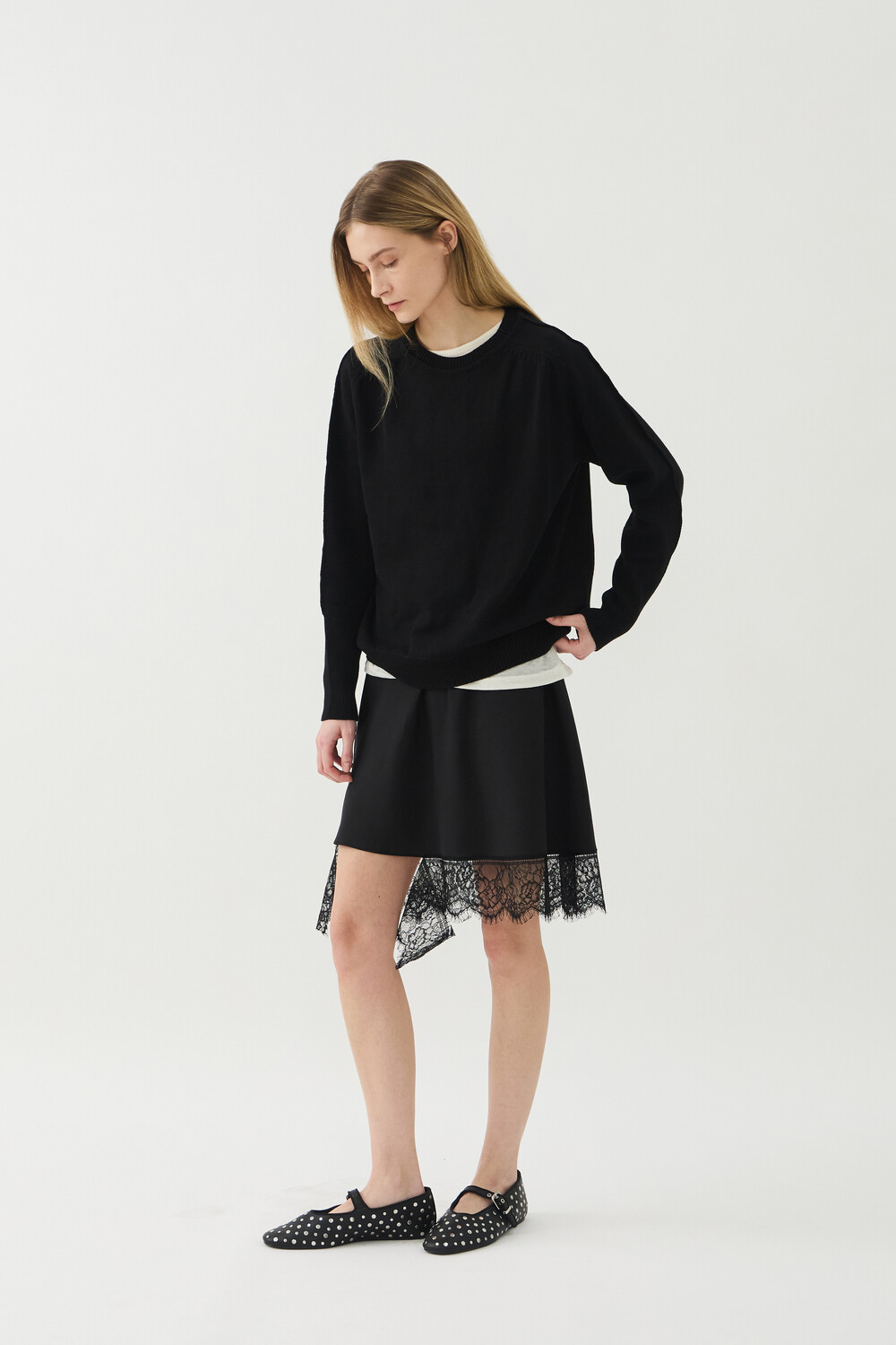 PINTUCK COTTON RAGLAN SWEATER - BLACK (W)