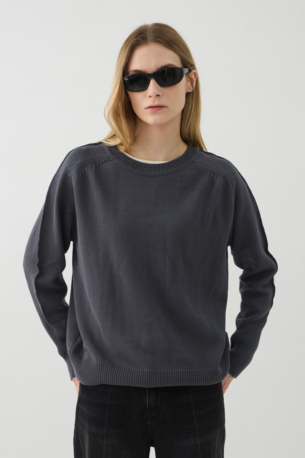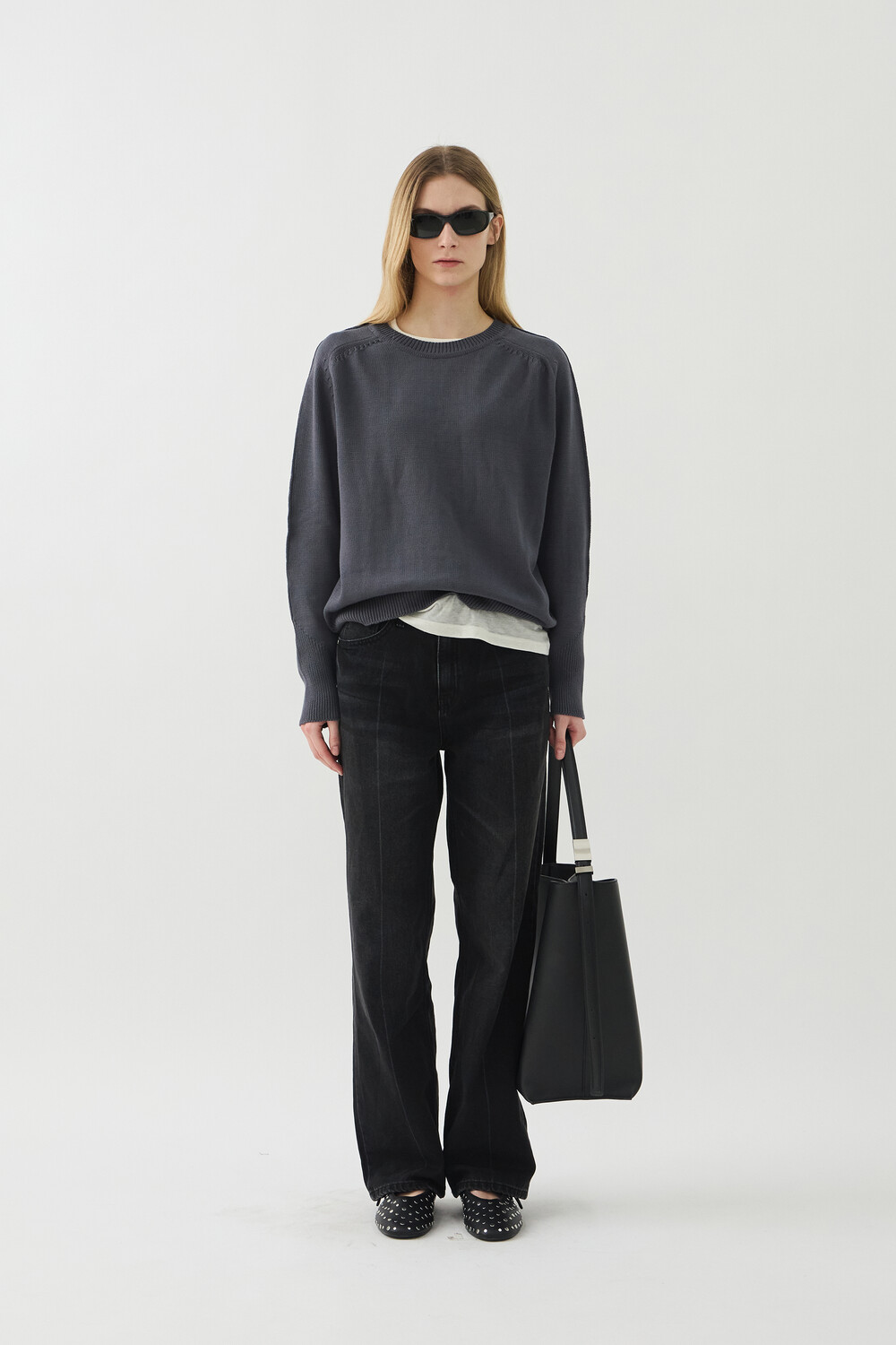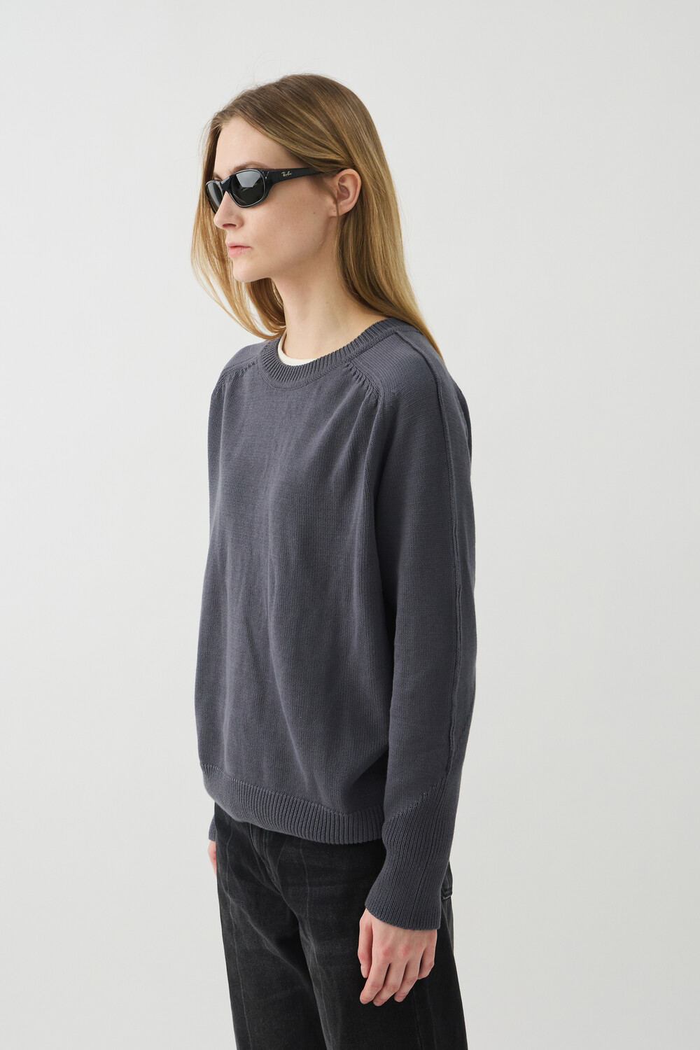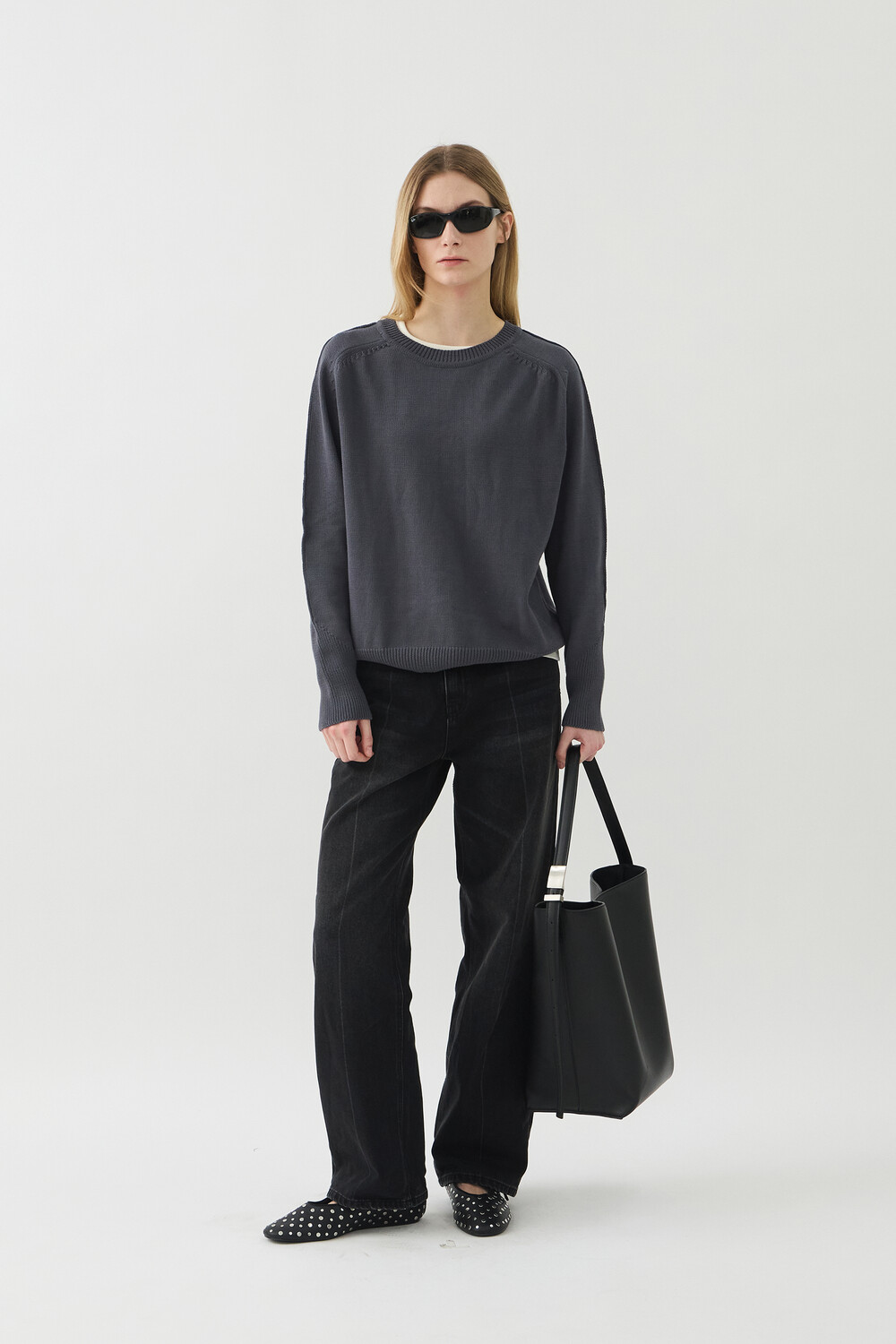 PINTUCK COTTON RAGLAN SWEATER - CHARCOAL (W)