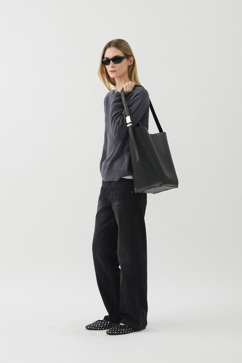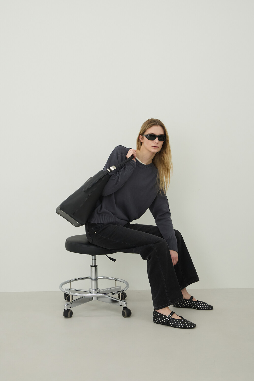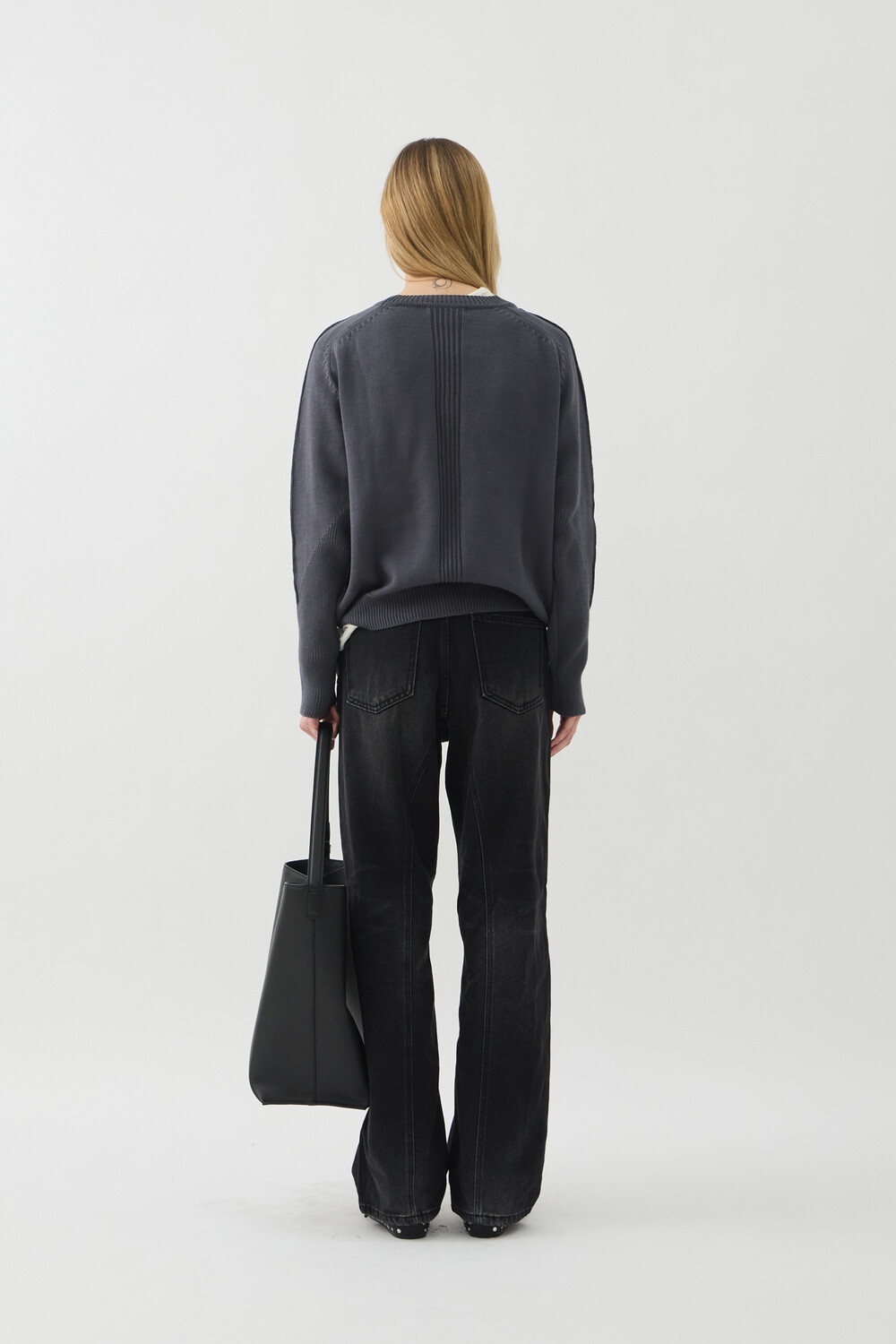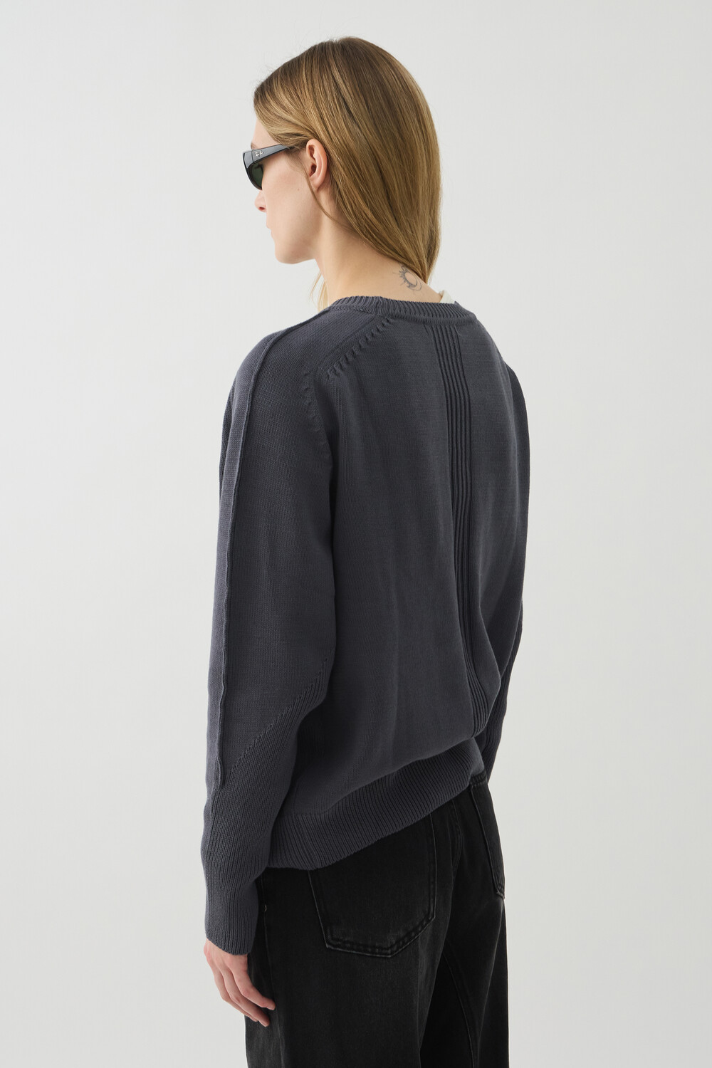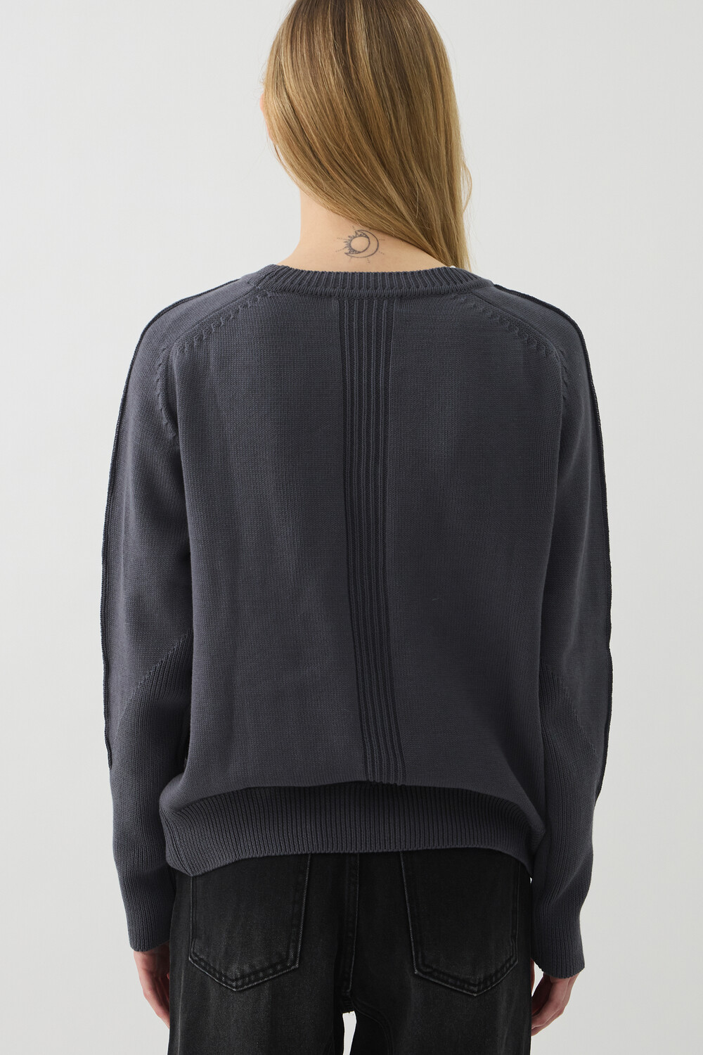 PINTUCK COTTON RAGLAN SWEATER - CHARCOAL (W)