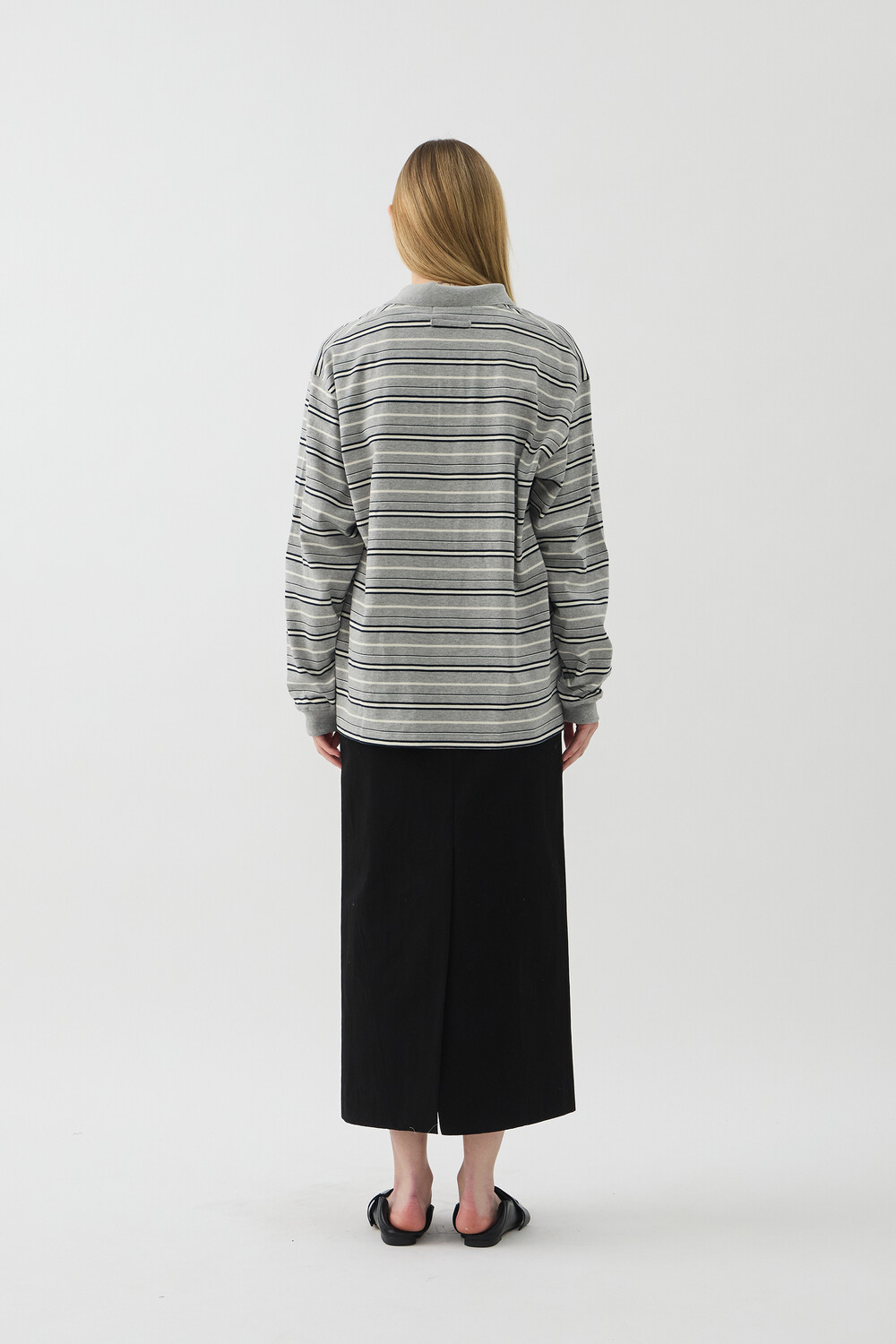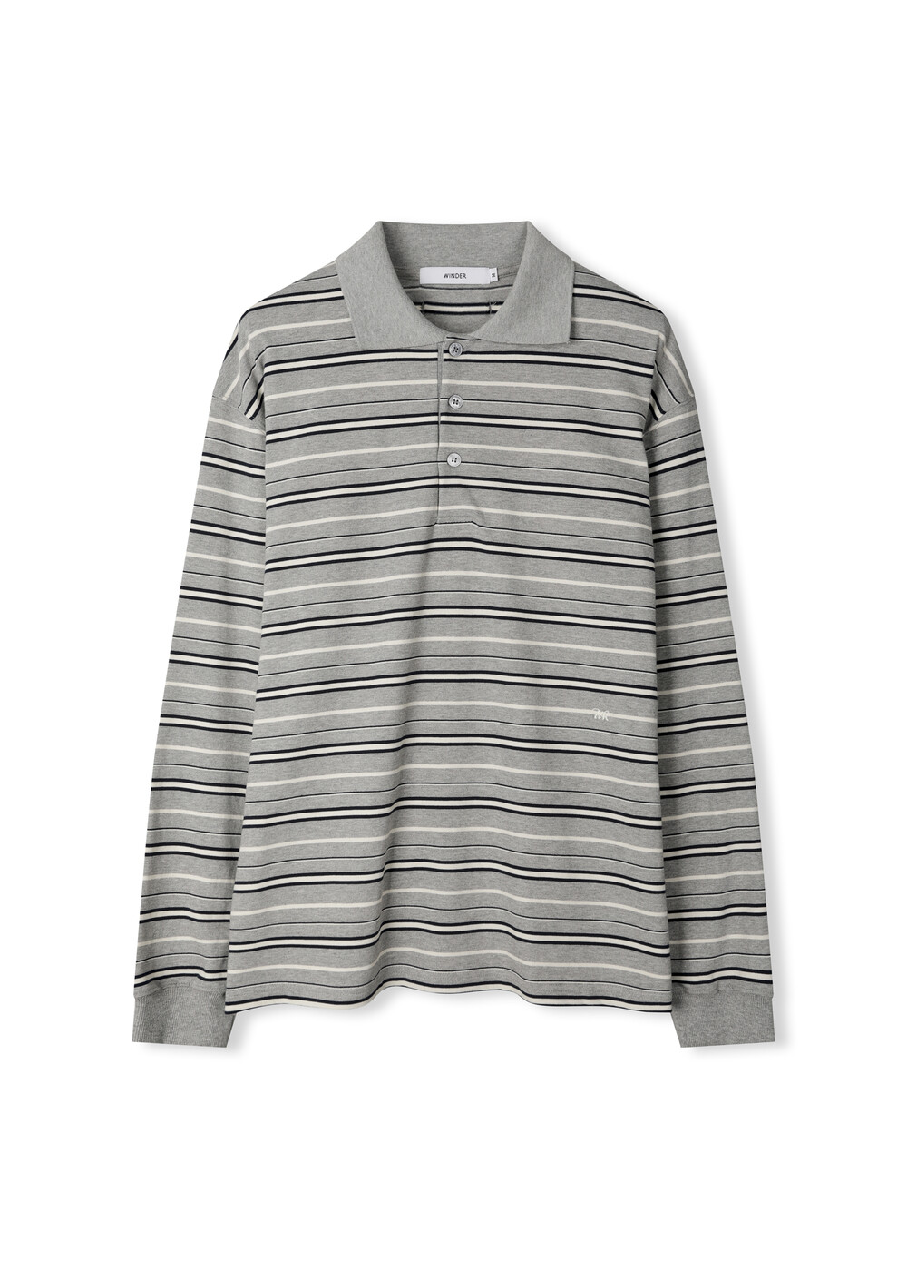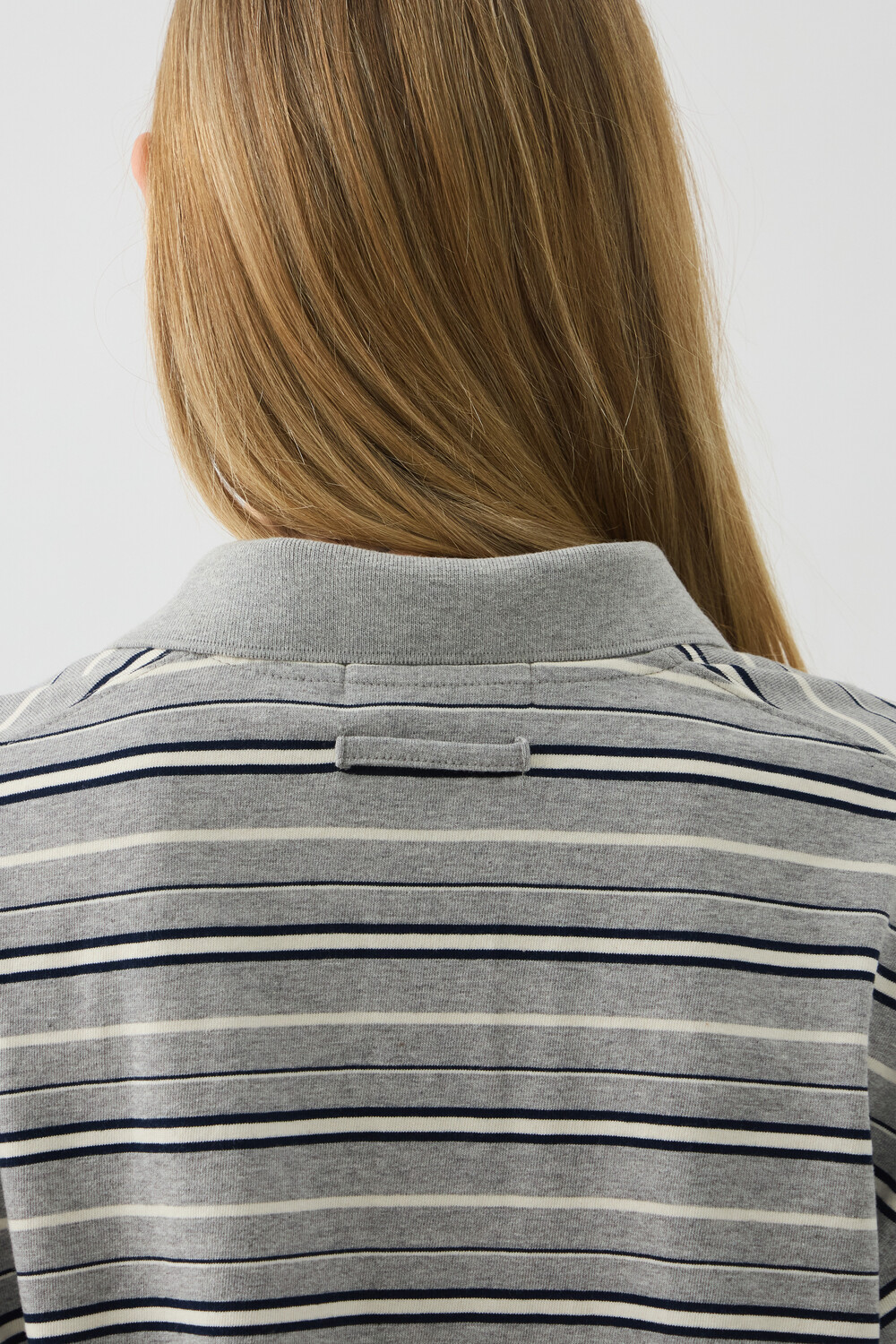 STRIPED COTTON POLO - MELANGE GREY (W)