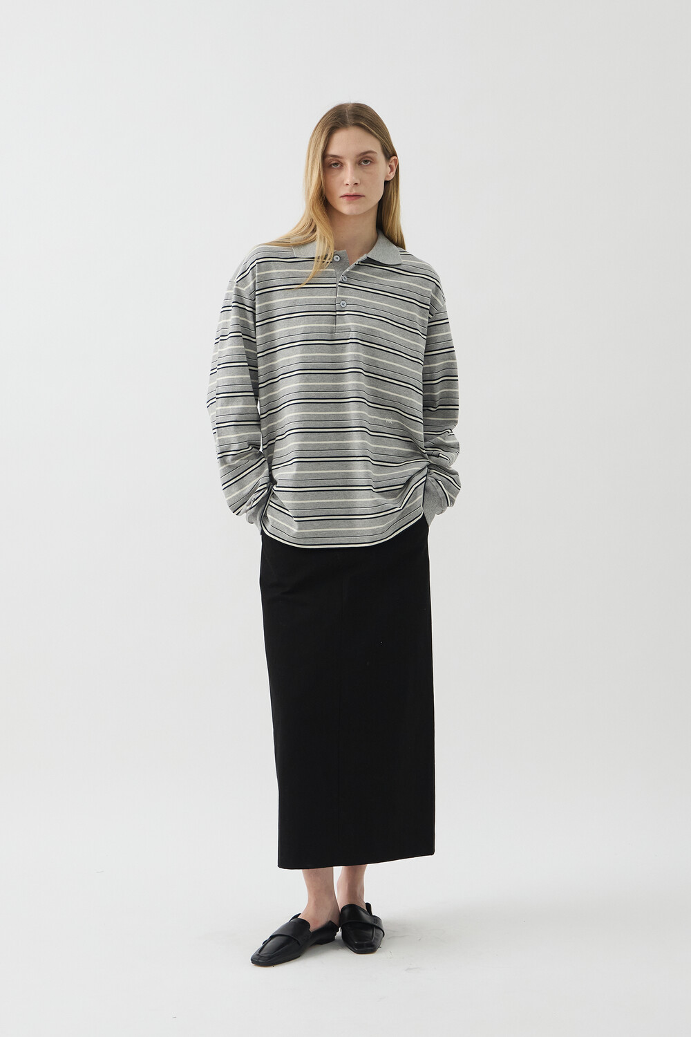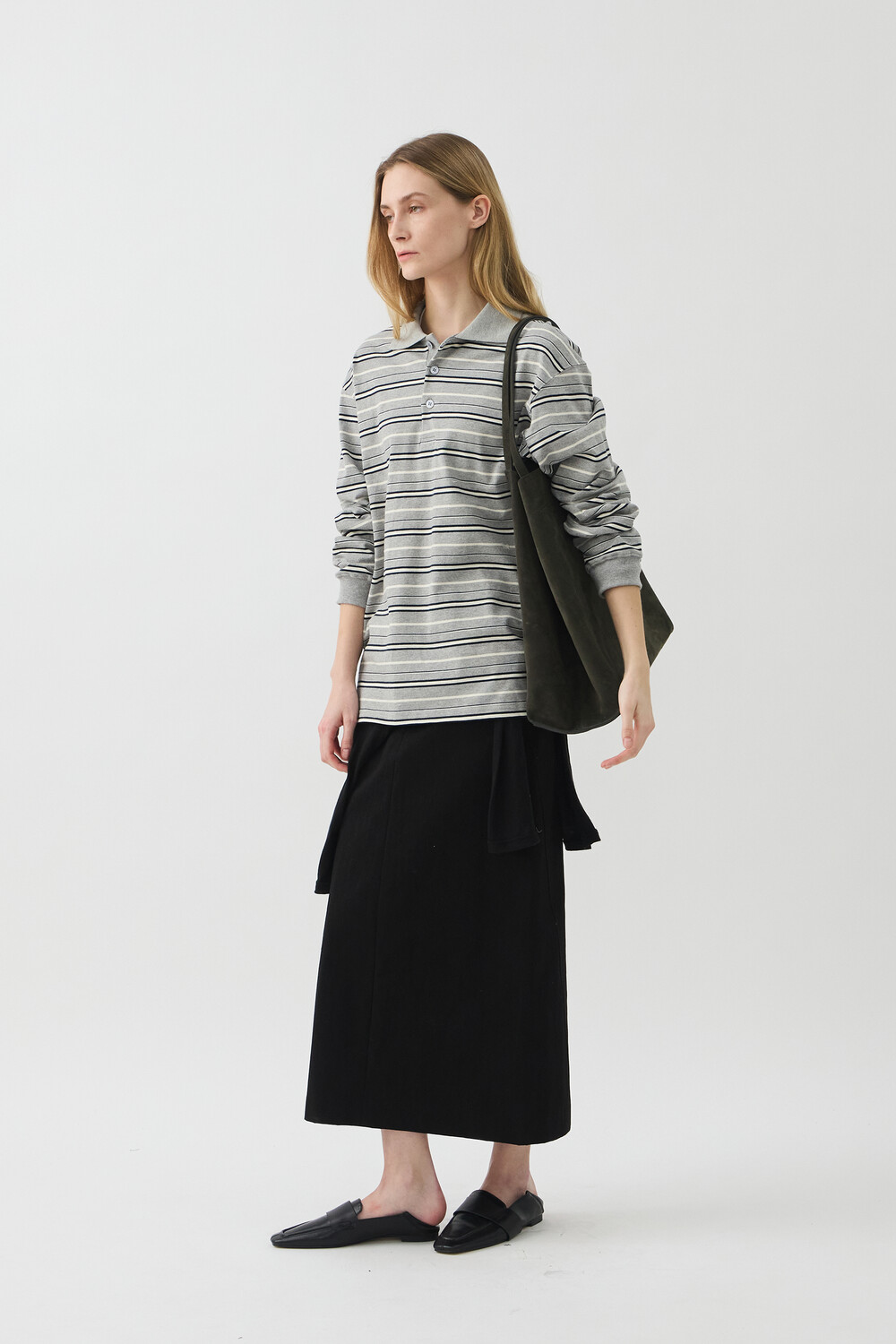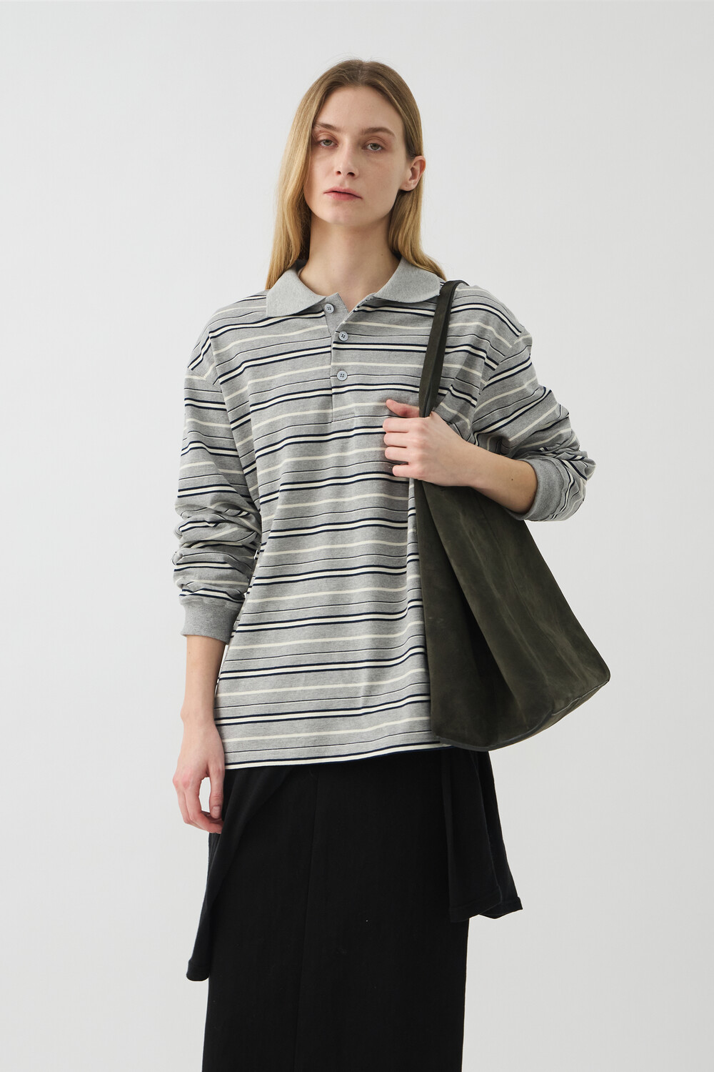 STRIPED COTTON POLO - MELANGE GREY (W)