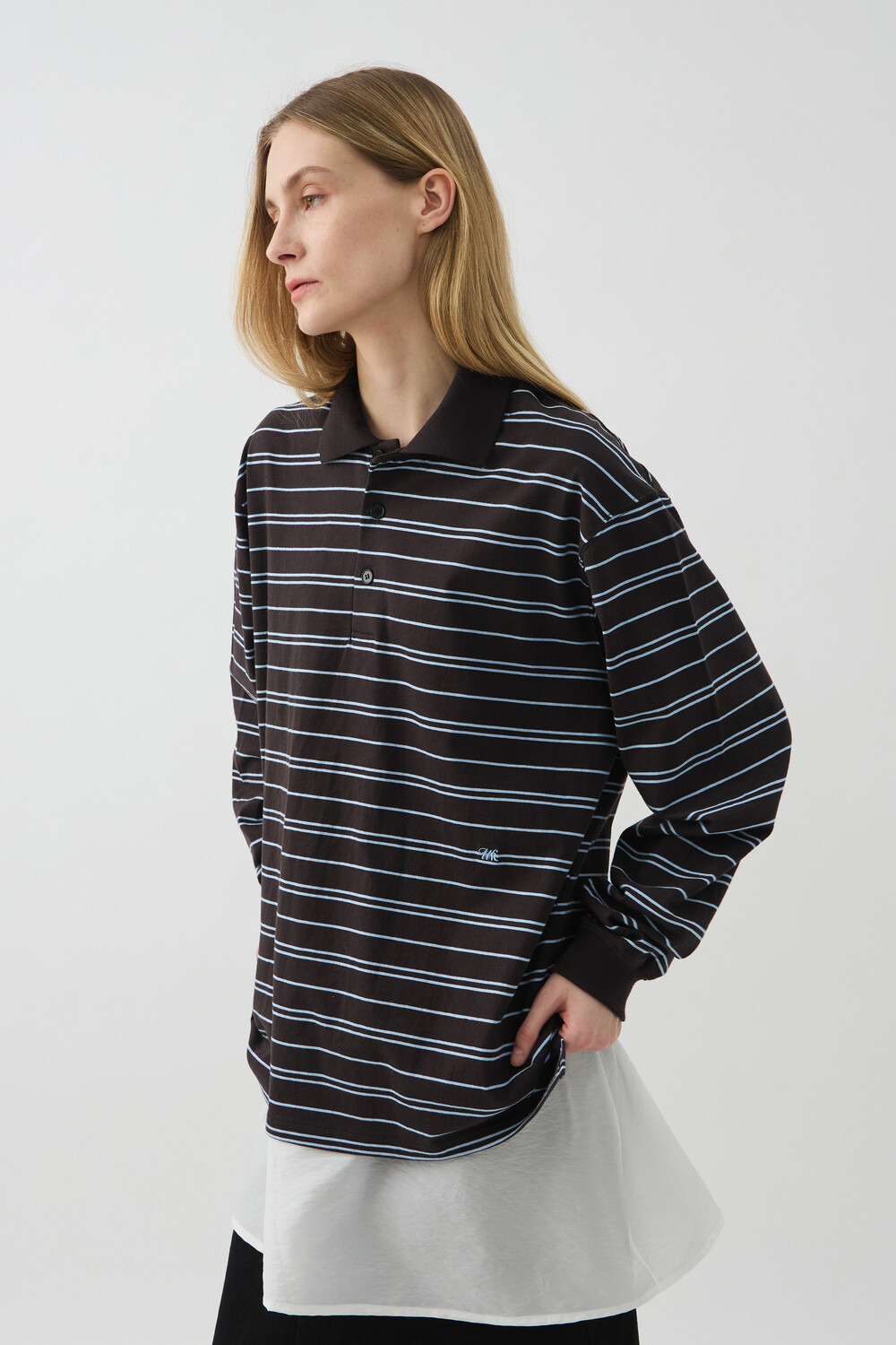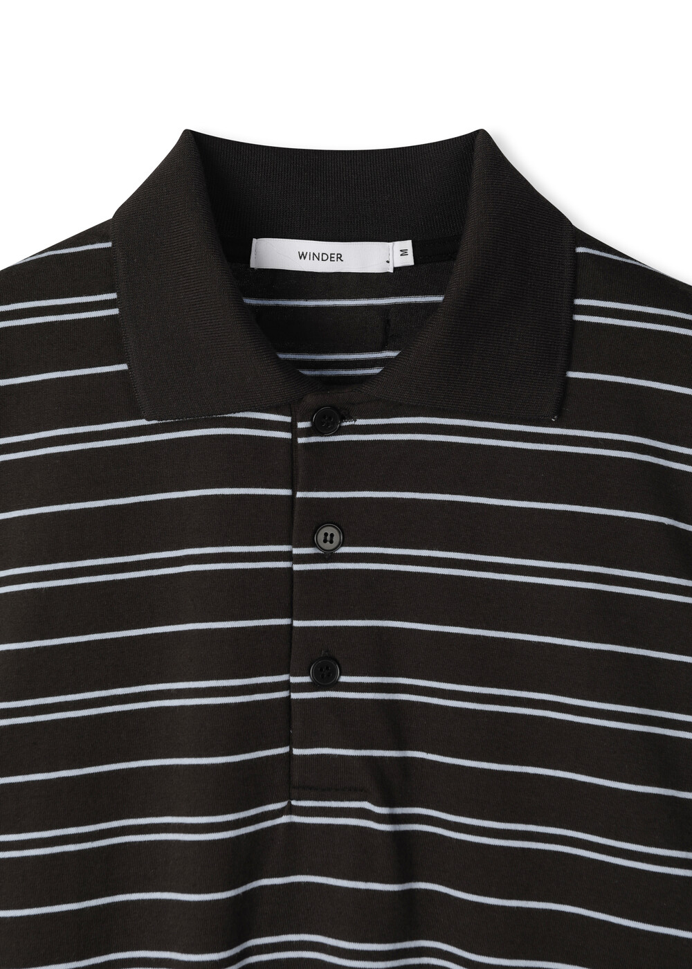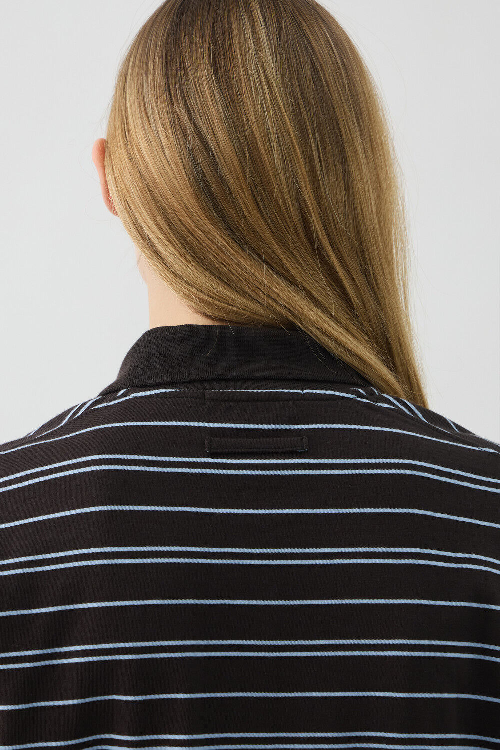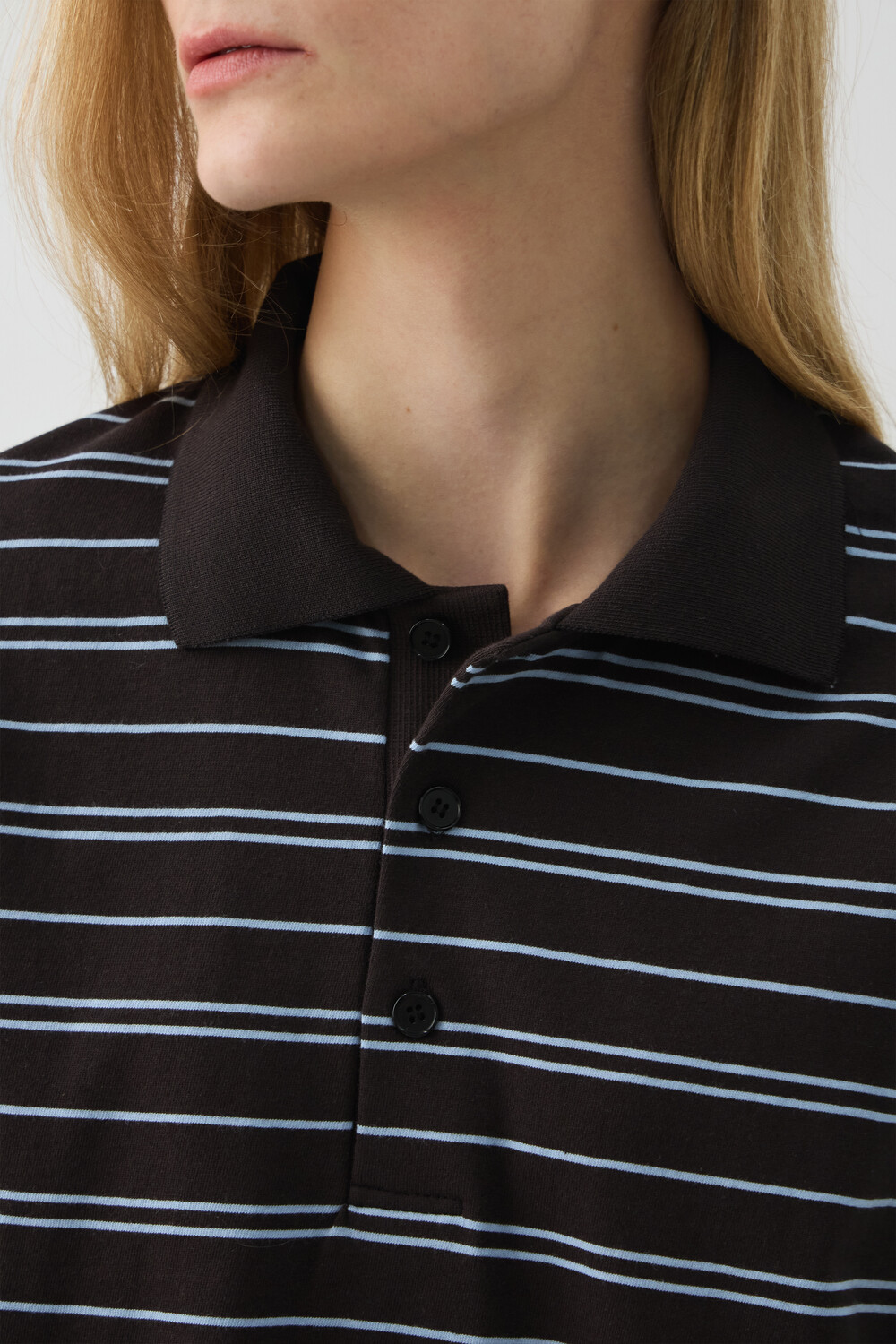 STRIPED COTTON POLO - CHARCOAL BROWN (W)