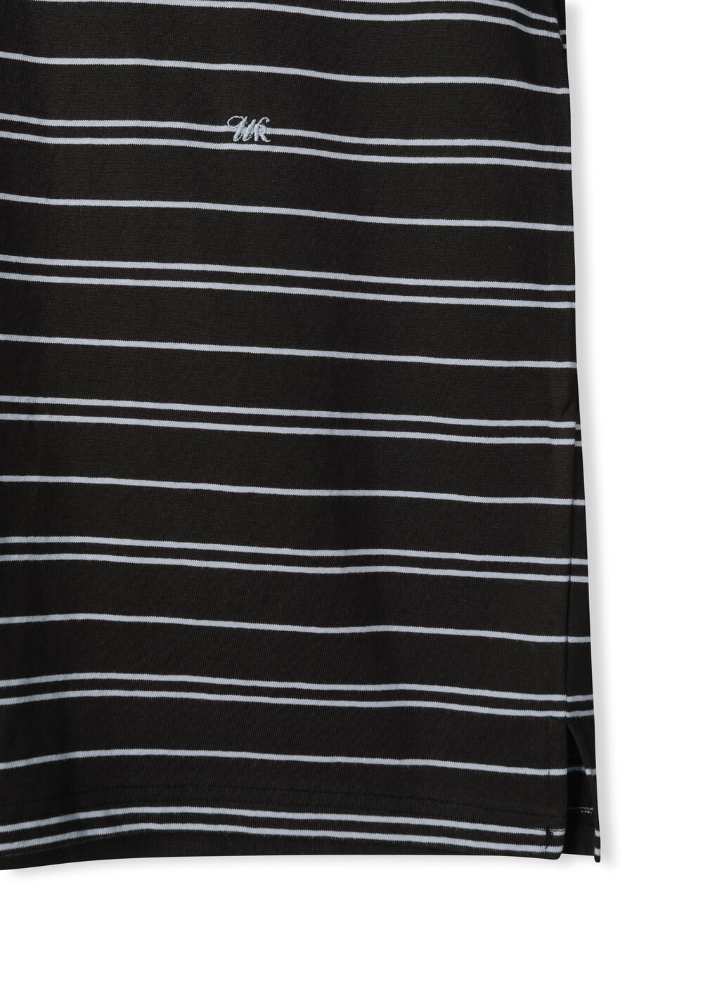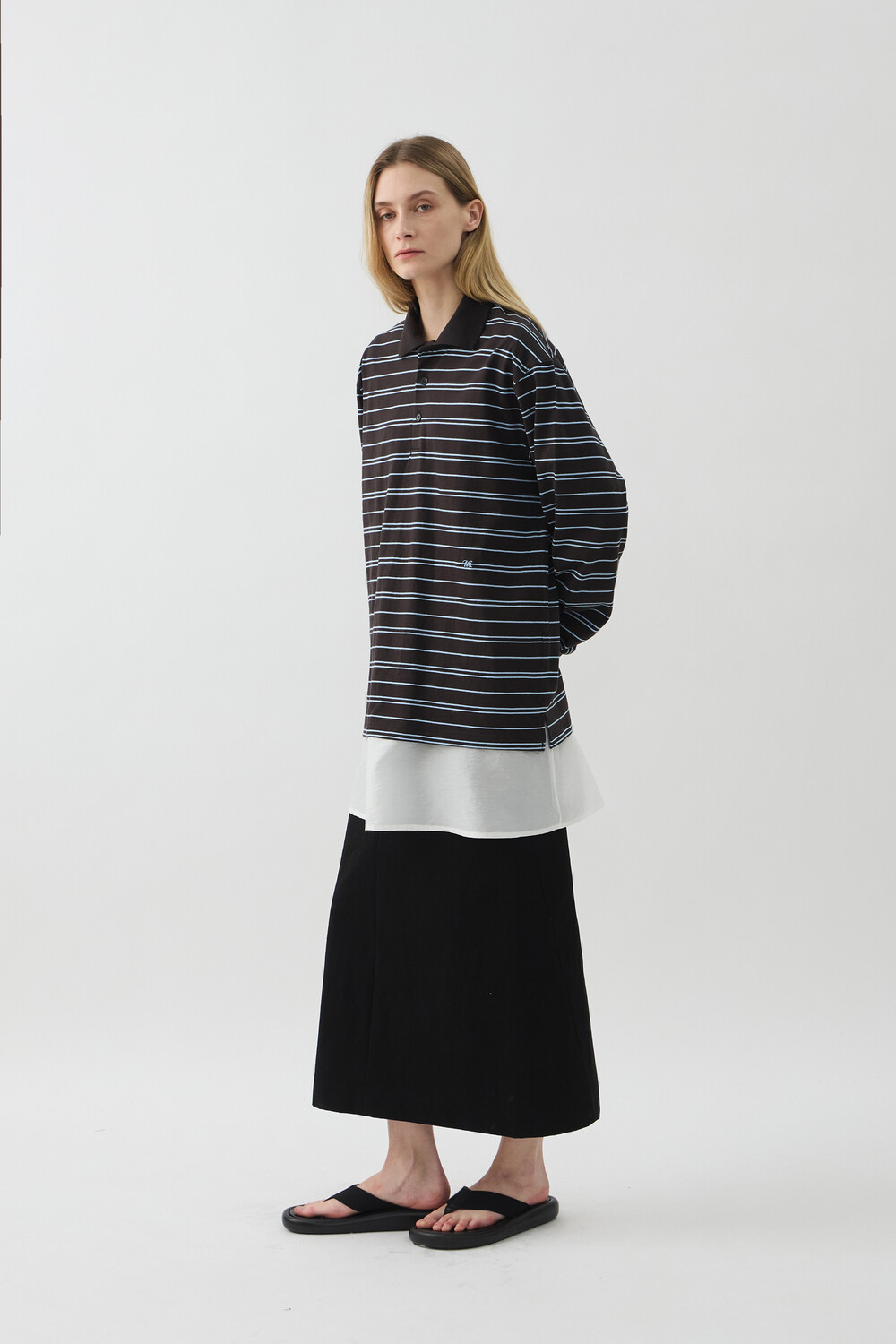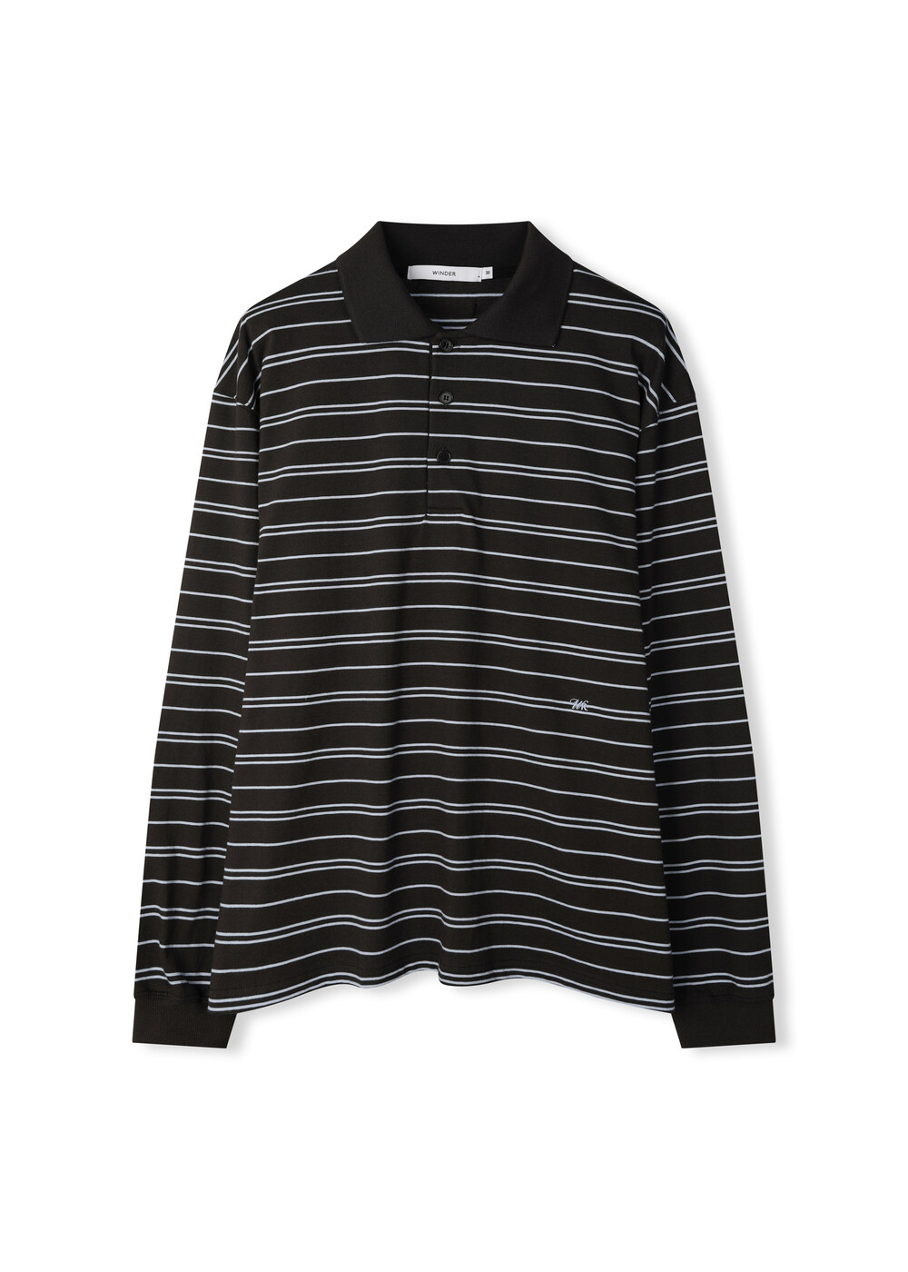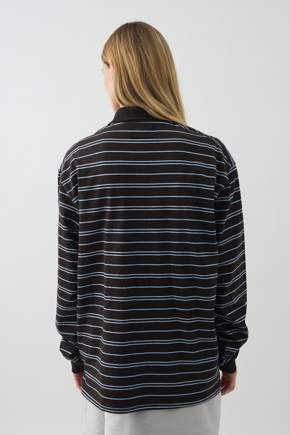 STRIPED COTTON POLO - CHARCOAL BROWN (W)