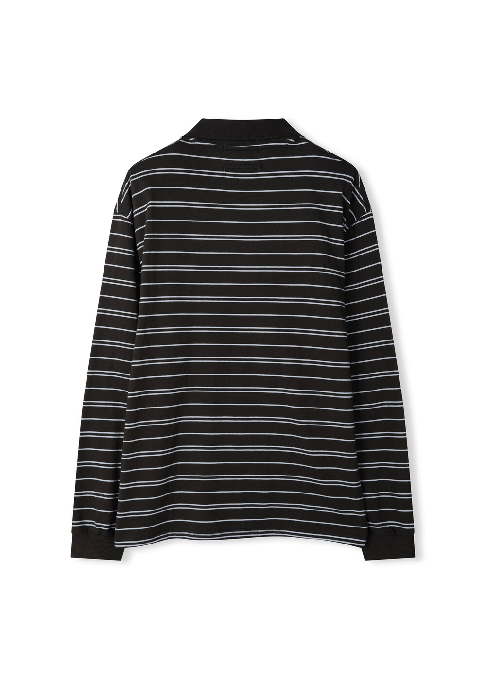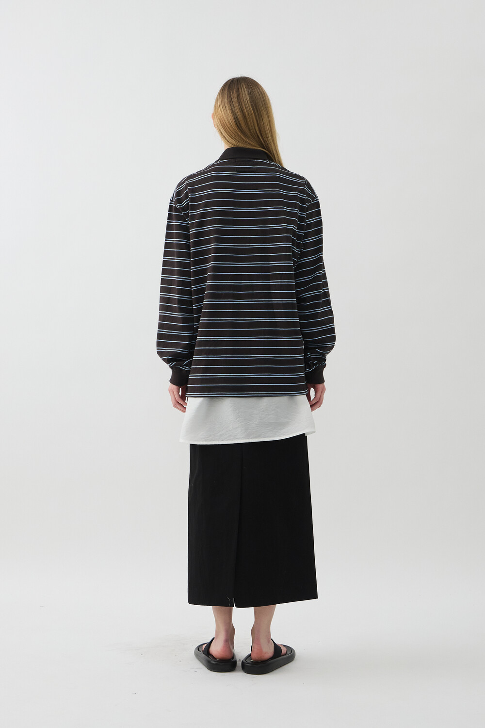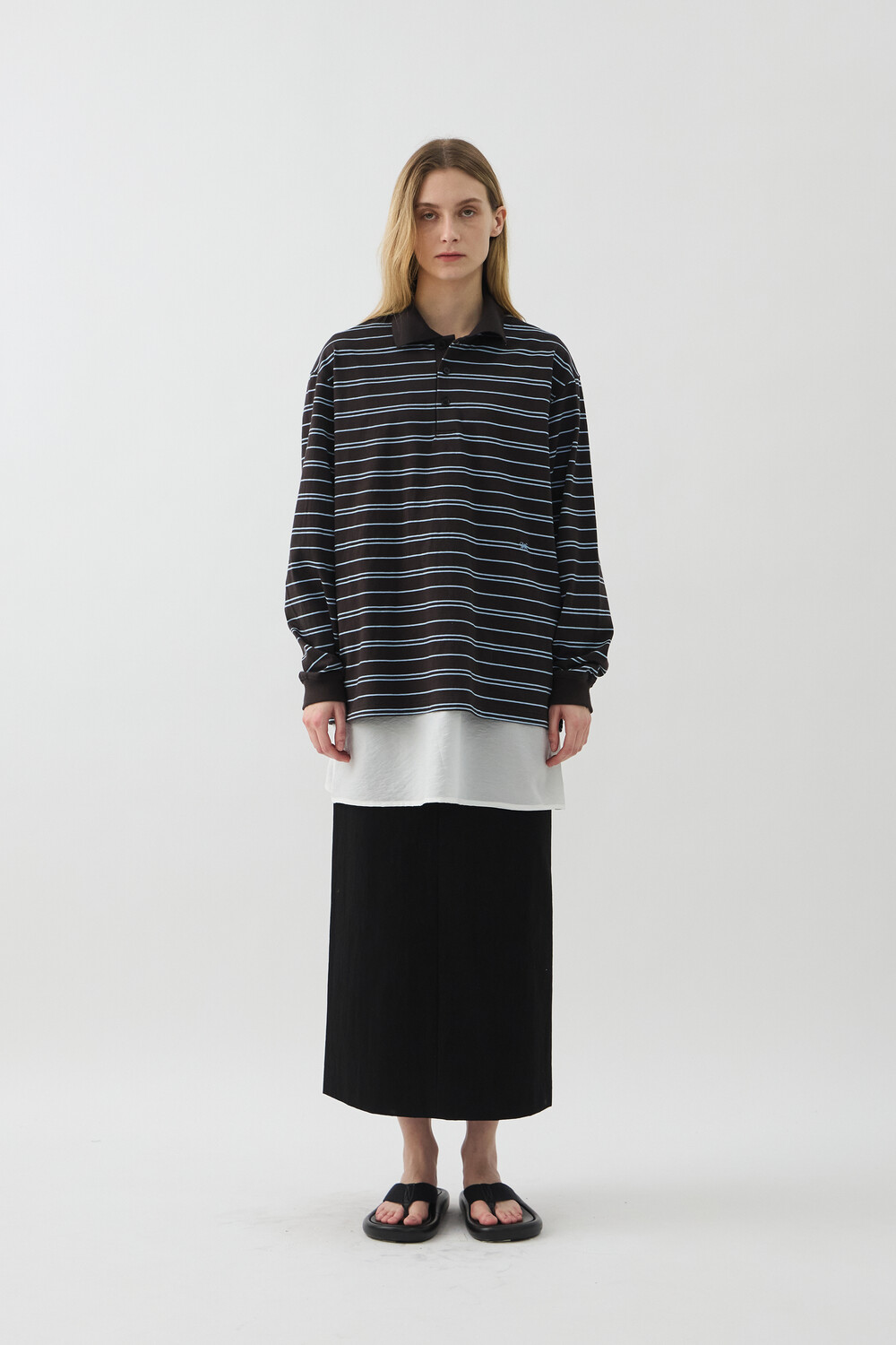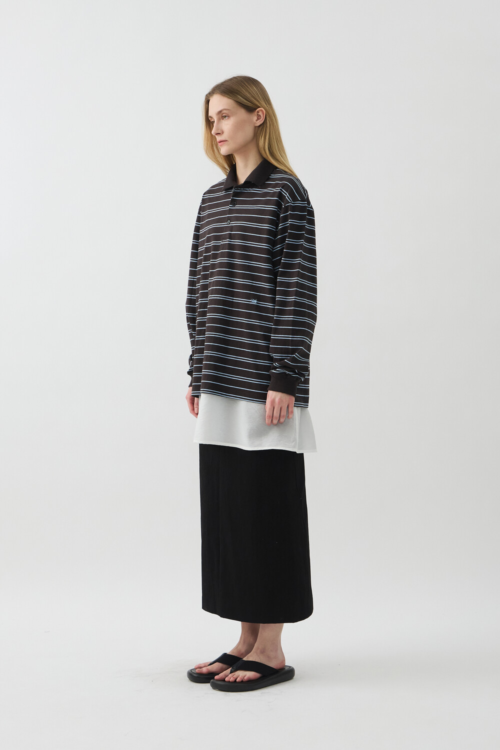 STRIPED COTTON POLO - CHARCOAL BROWN (W)