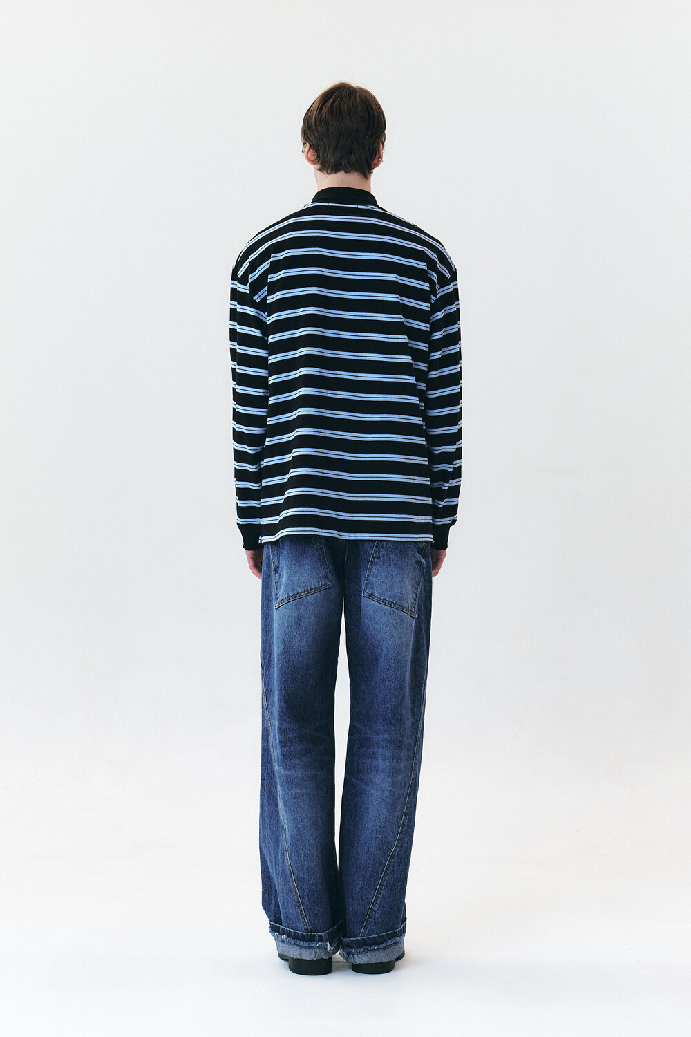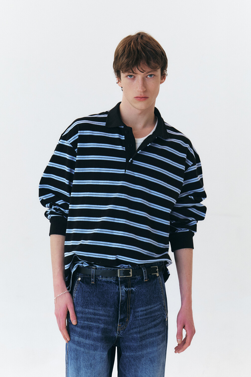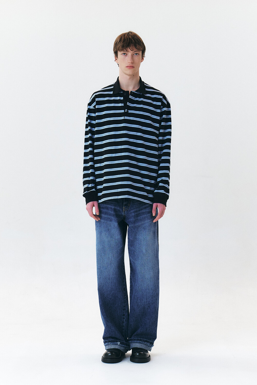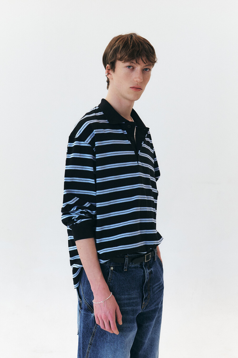 [5th RESTOCK] STRIPED COTTON POLO - BLUE BLACK