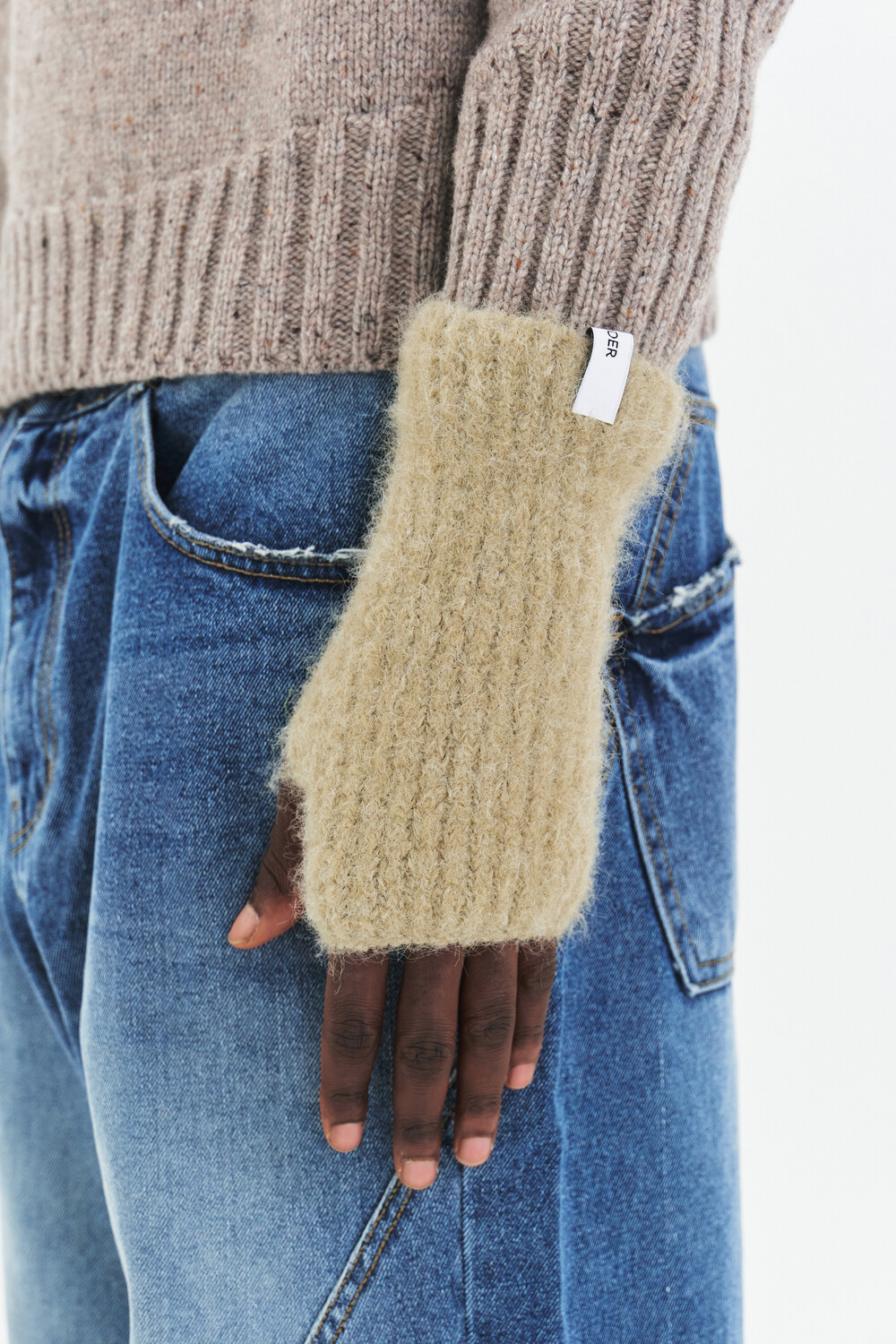 FLUFFY WOOL BLEND HAND WARMER- LIGHT KHAKI