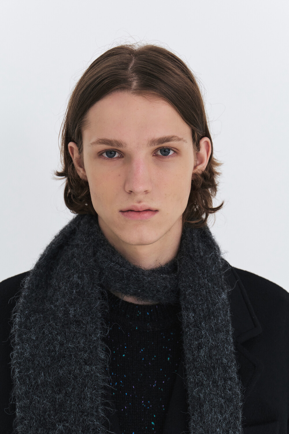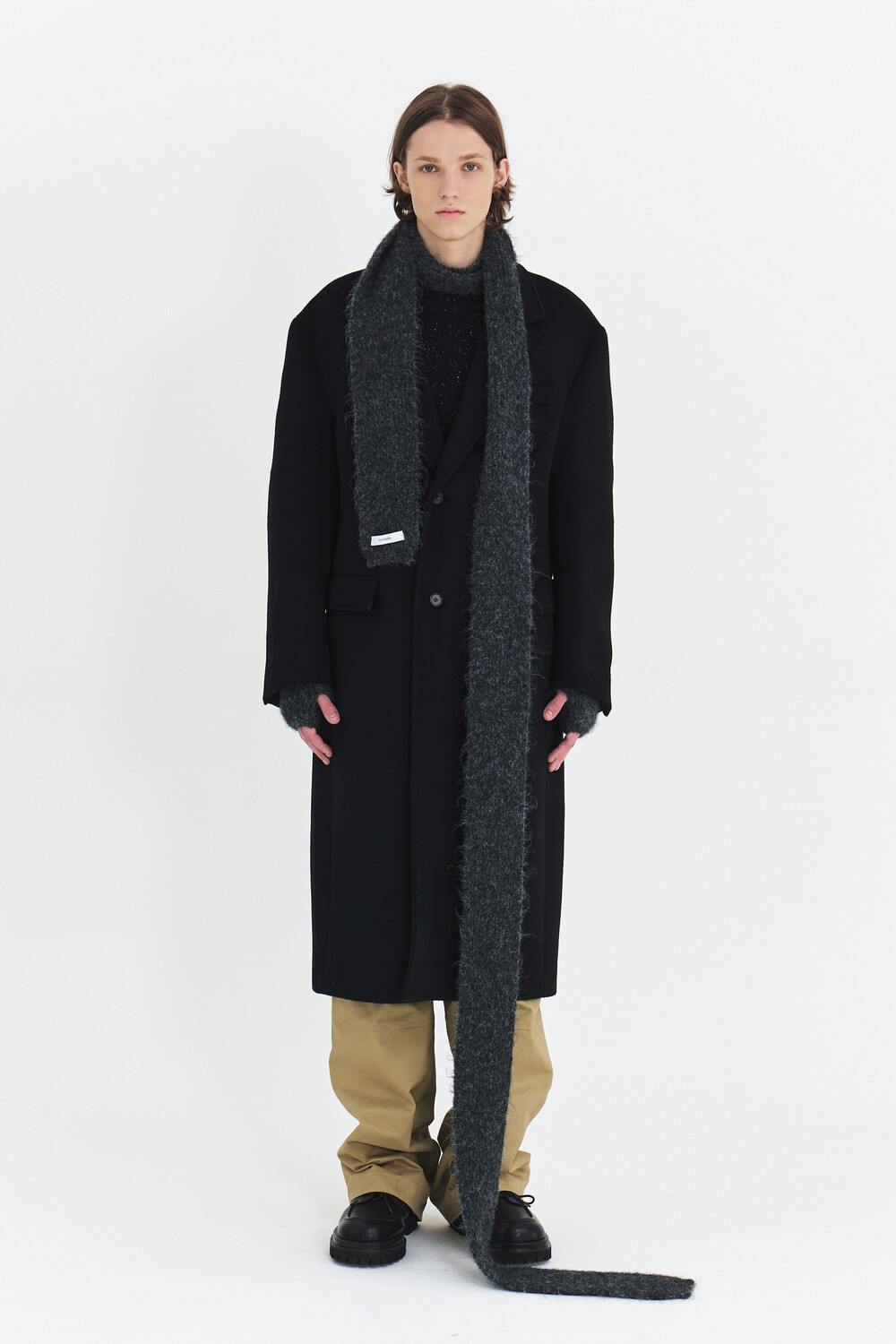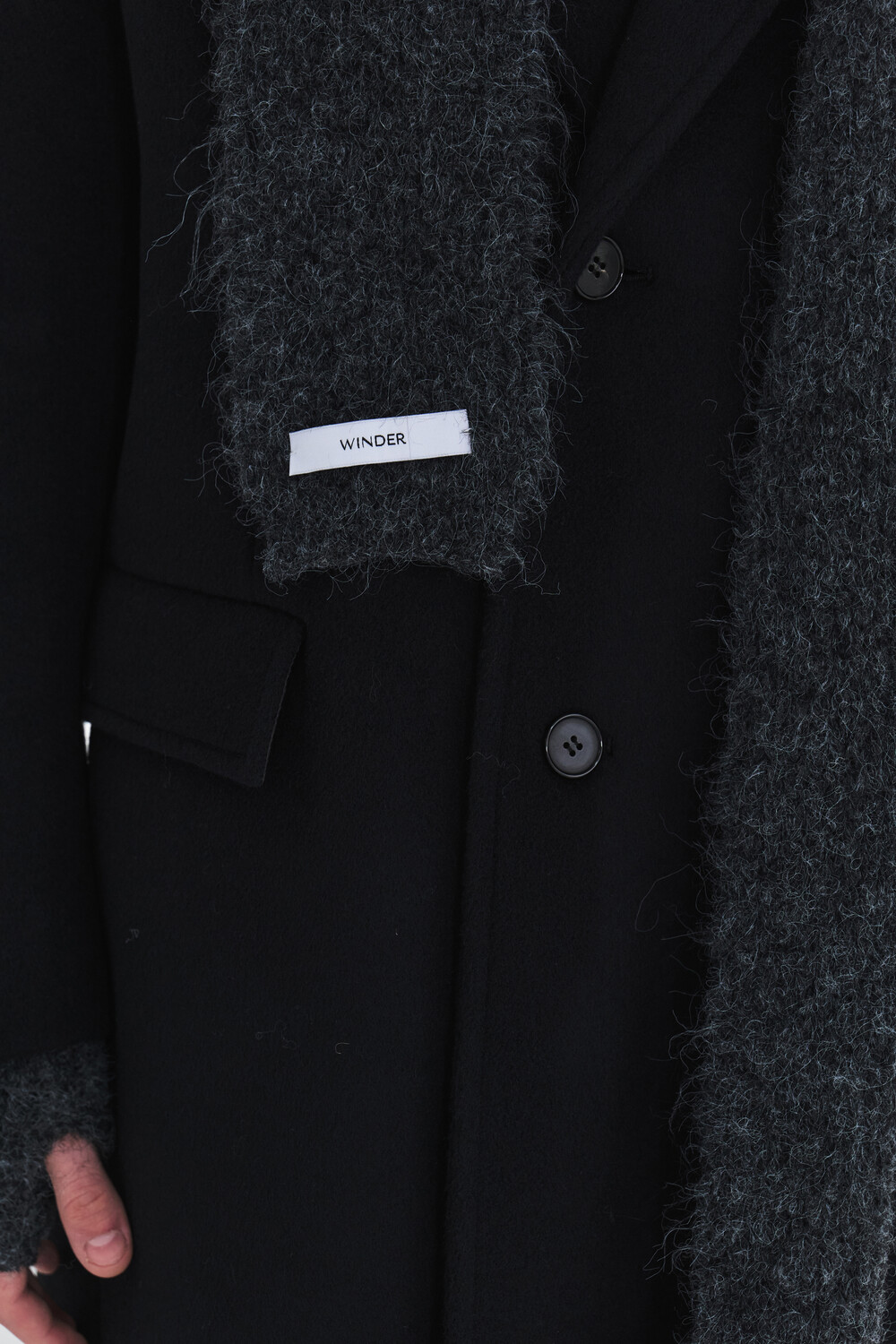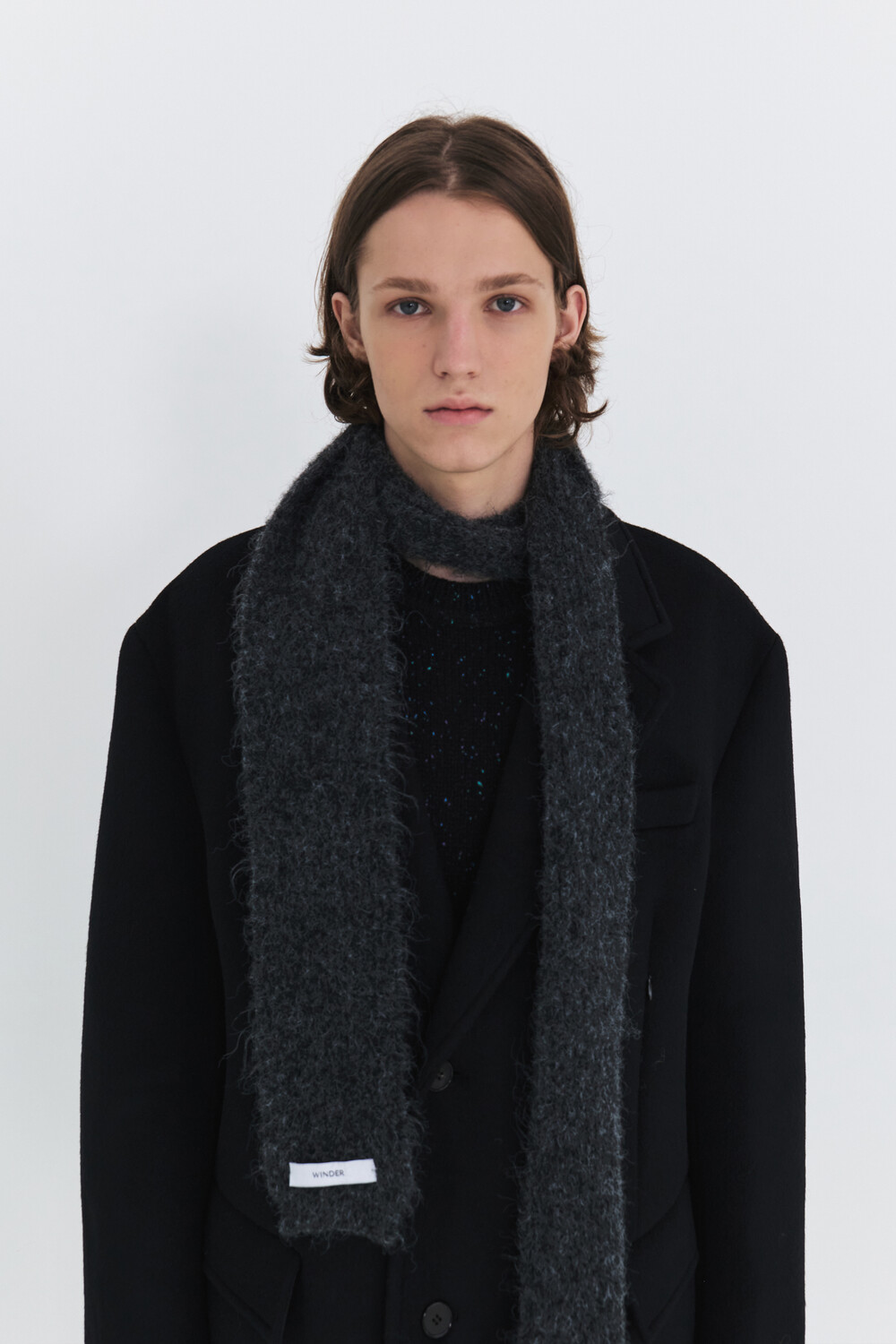 FLUFFY WOOL BLEND LONG MUFFLER - MELANGE CHARCOAL