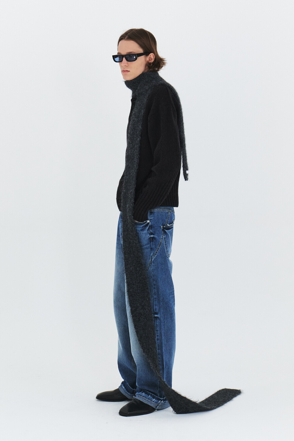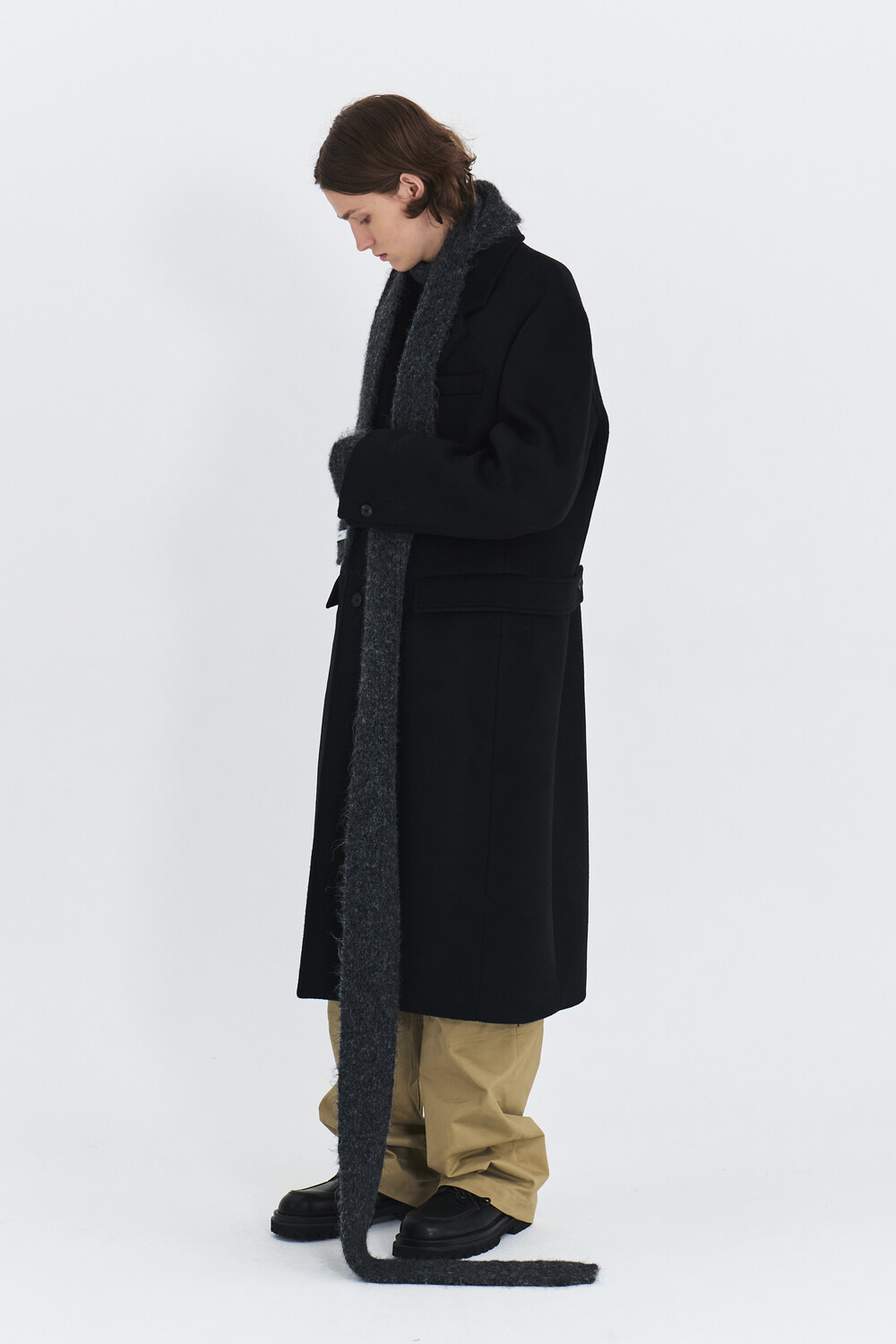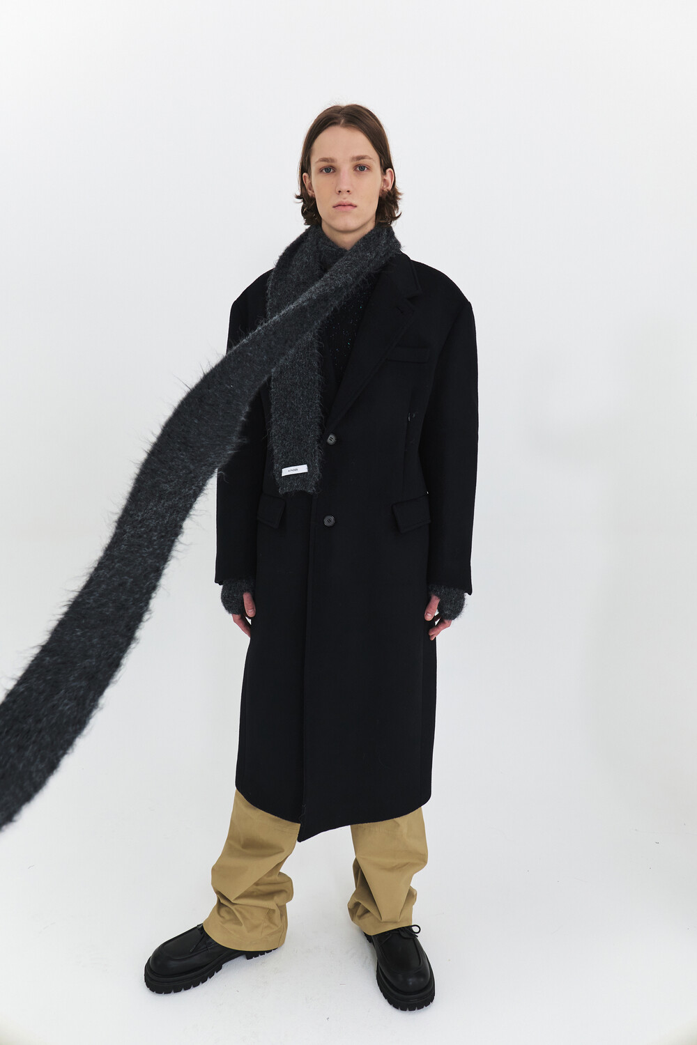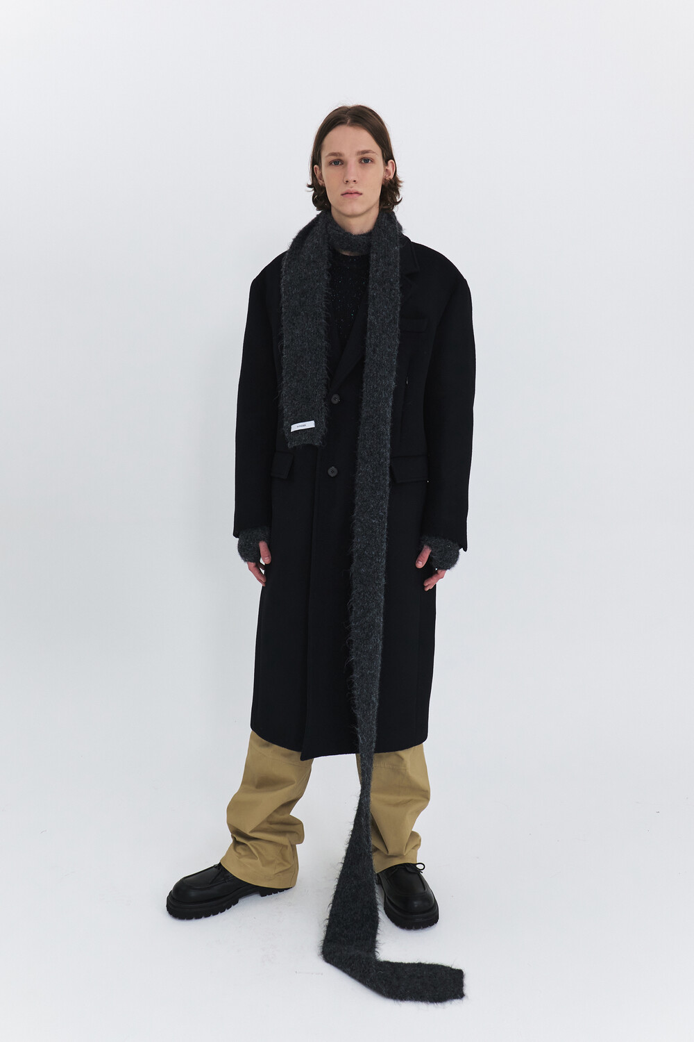 FLUFFY WOOL BLEND LONG MUFFLER - MELANGE CHARCOAL