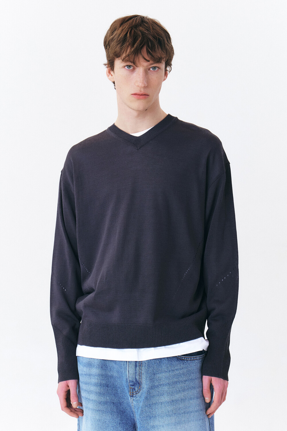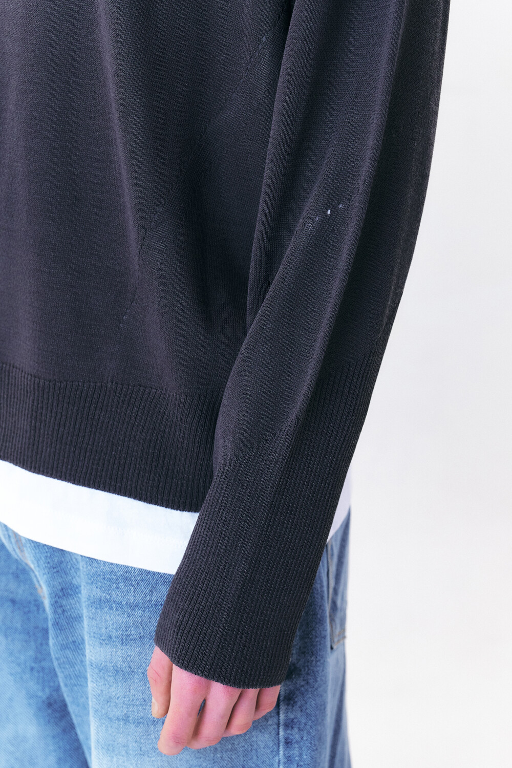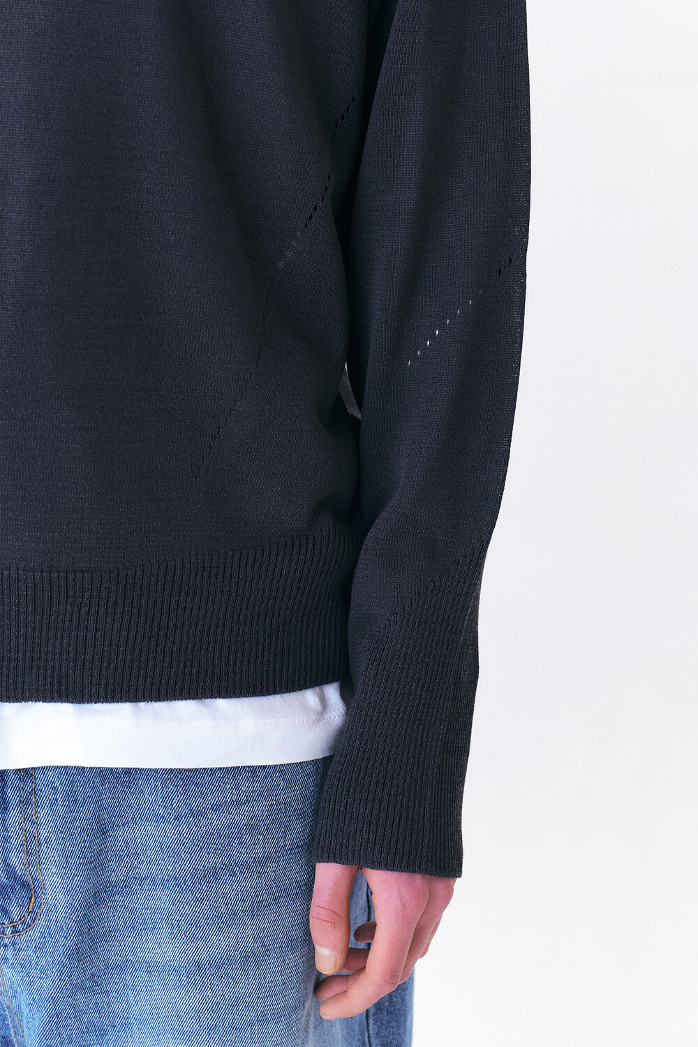 MODIFIED SHEER KNIT SWEATER - DIM GREY