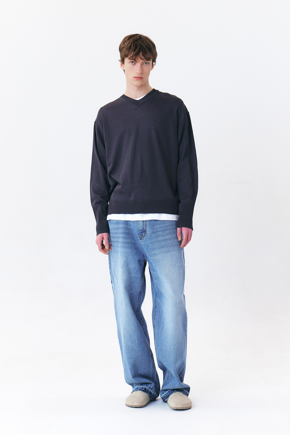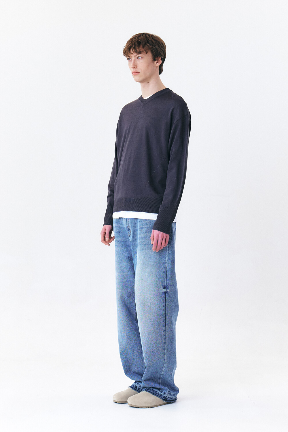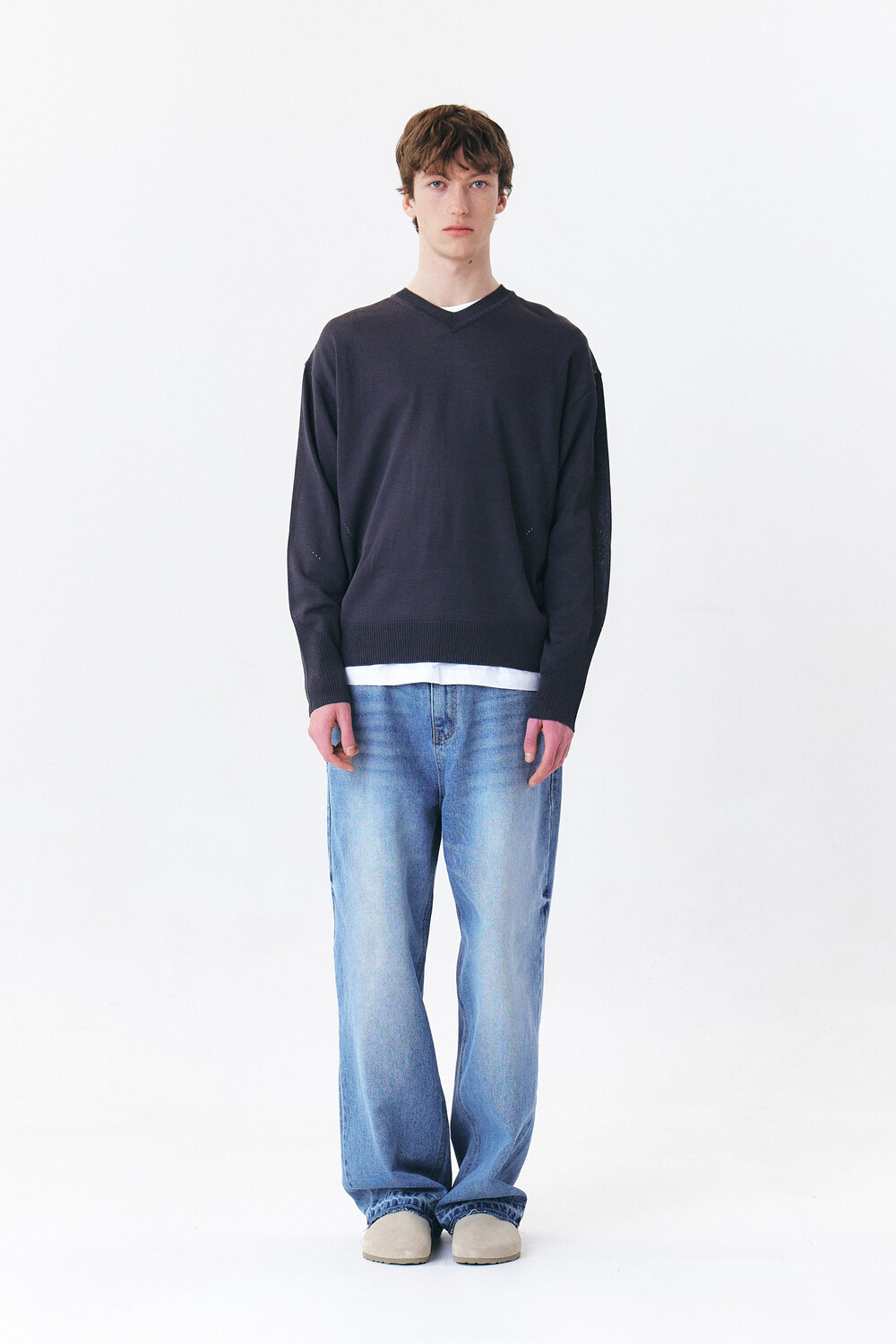 MODIFIED SHEER KNIT SWEATER - DIM GREY