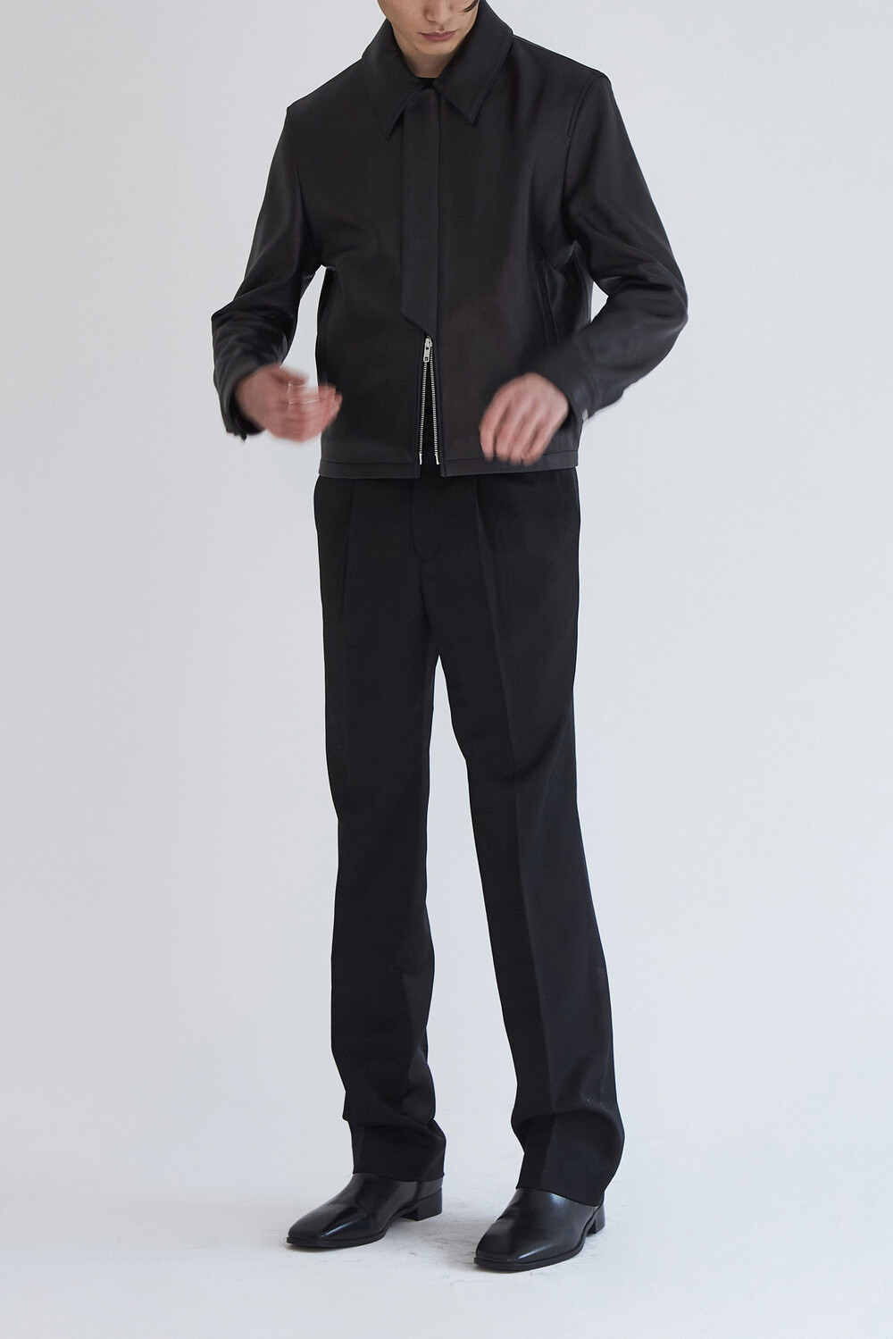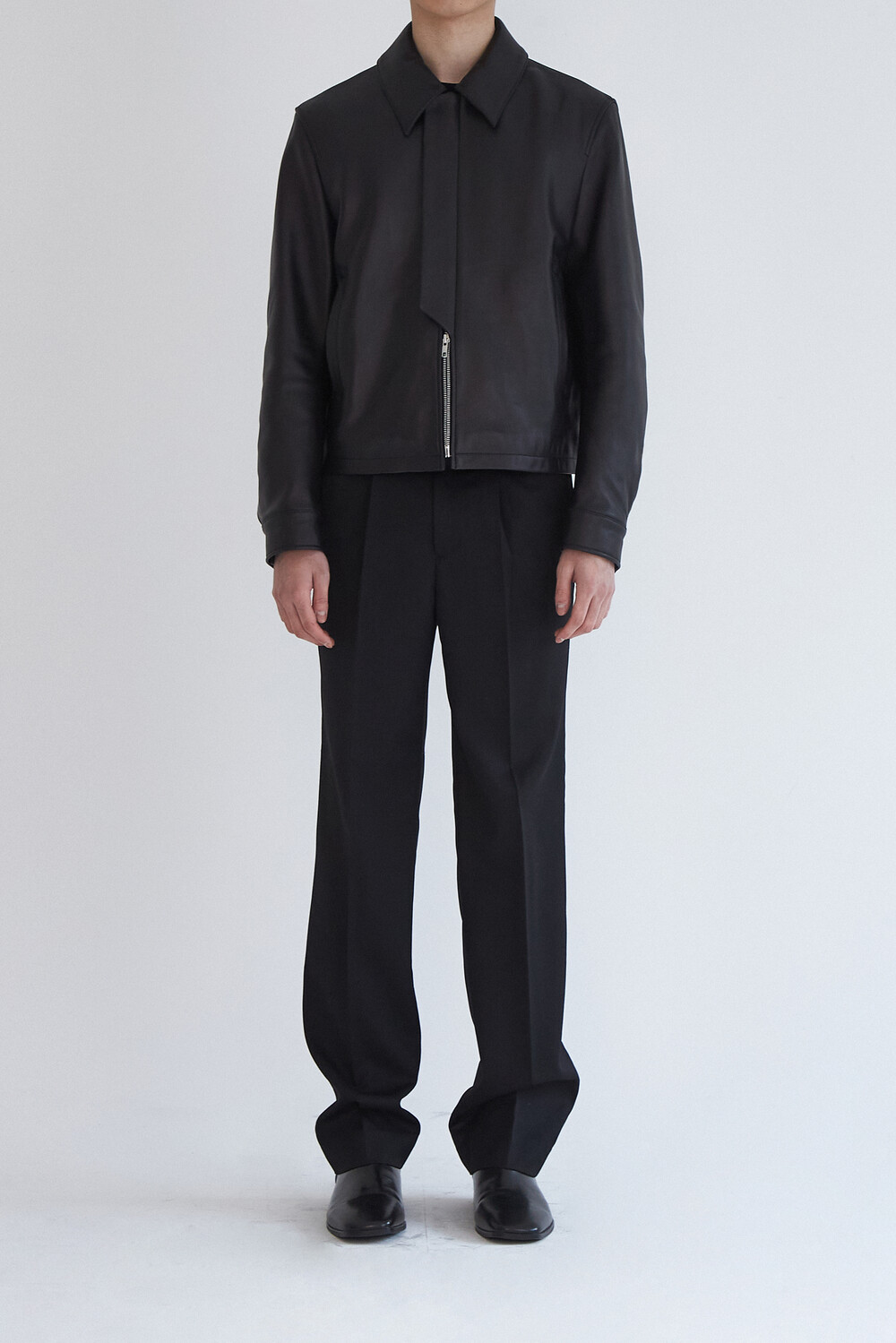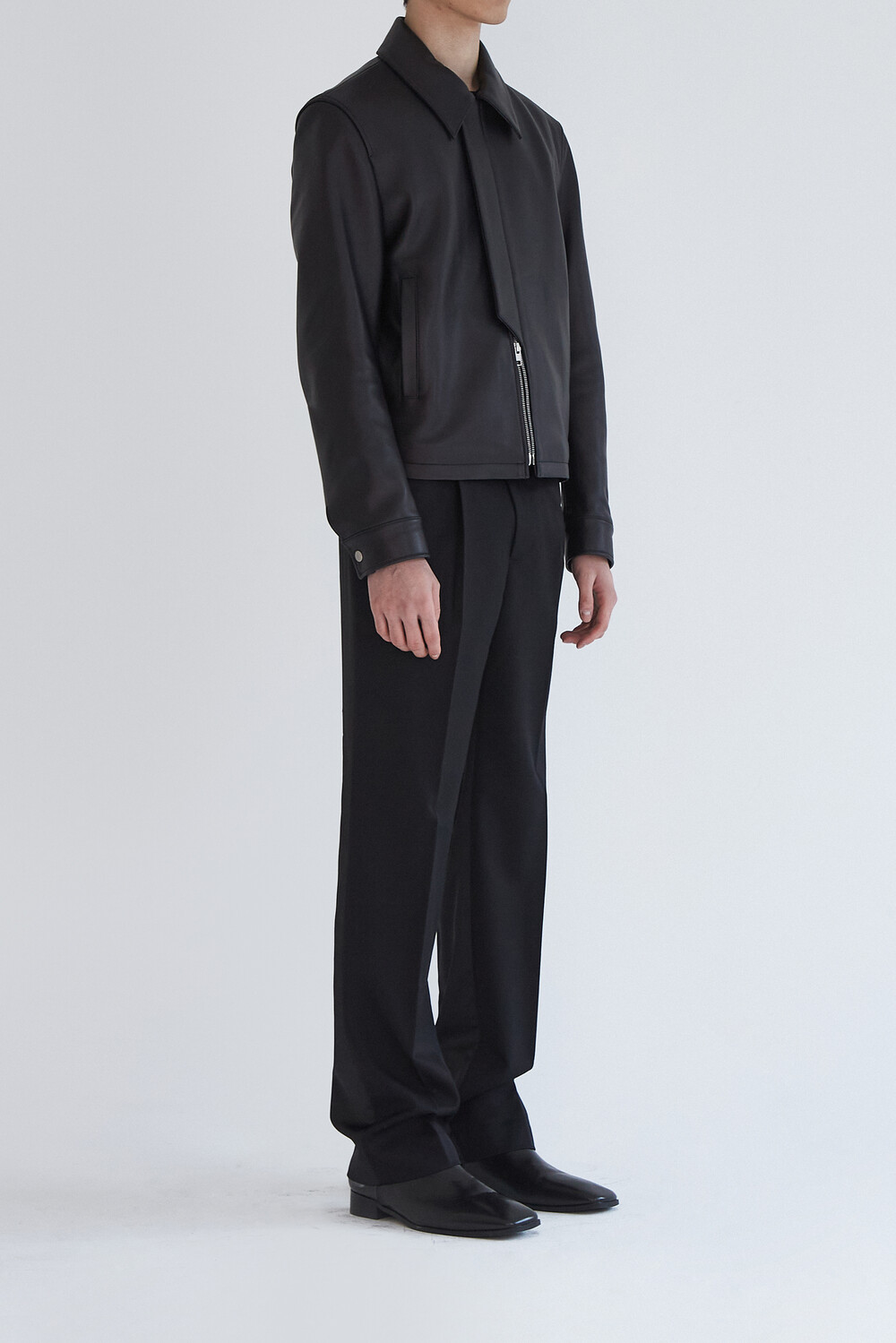 (Restock) CROPPED ITALY LEATHER JACKET - BLACK