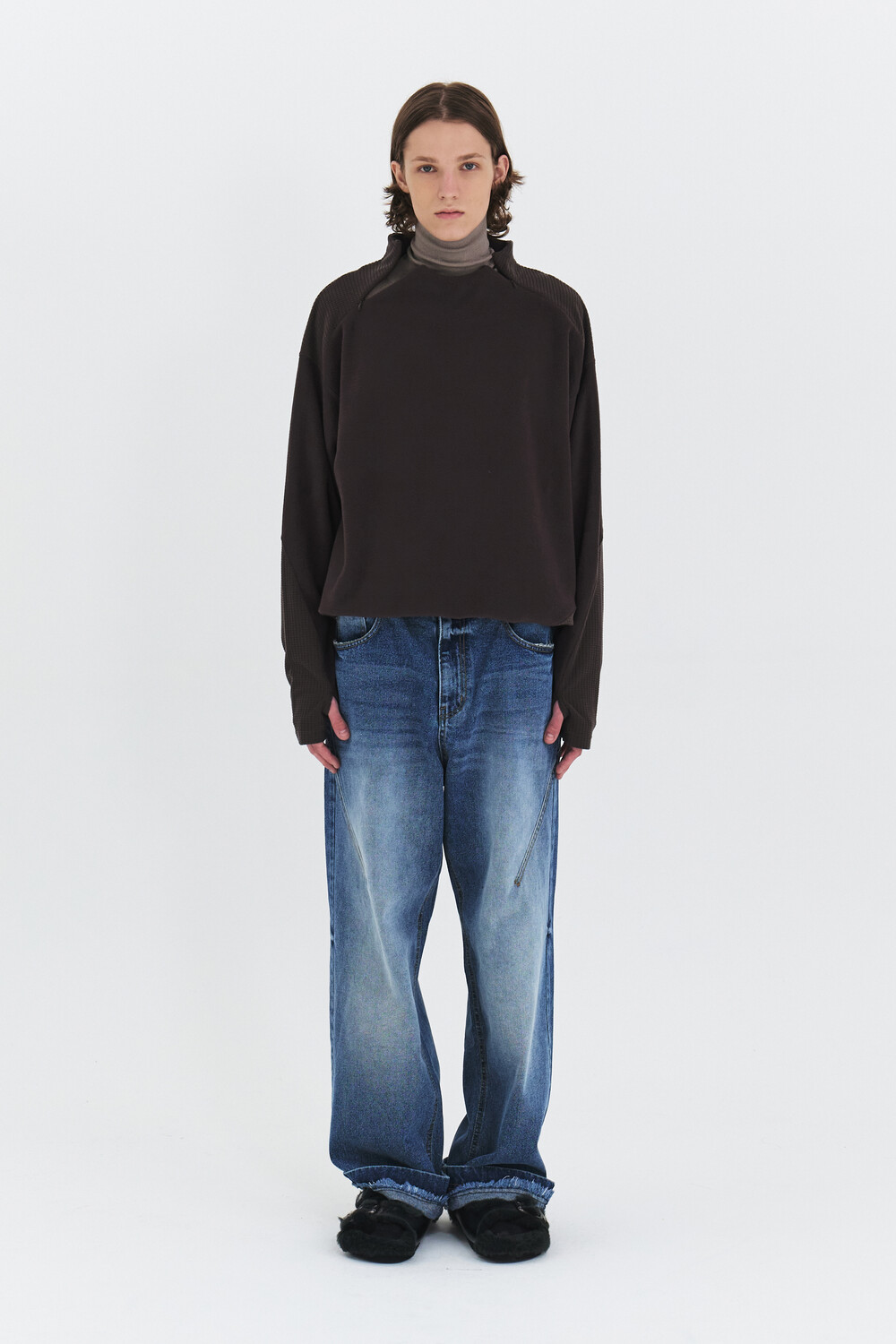 BLOCKING FLEECE PULL-OVER TOP - CHARCOAL NAVY