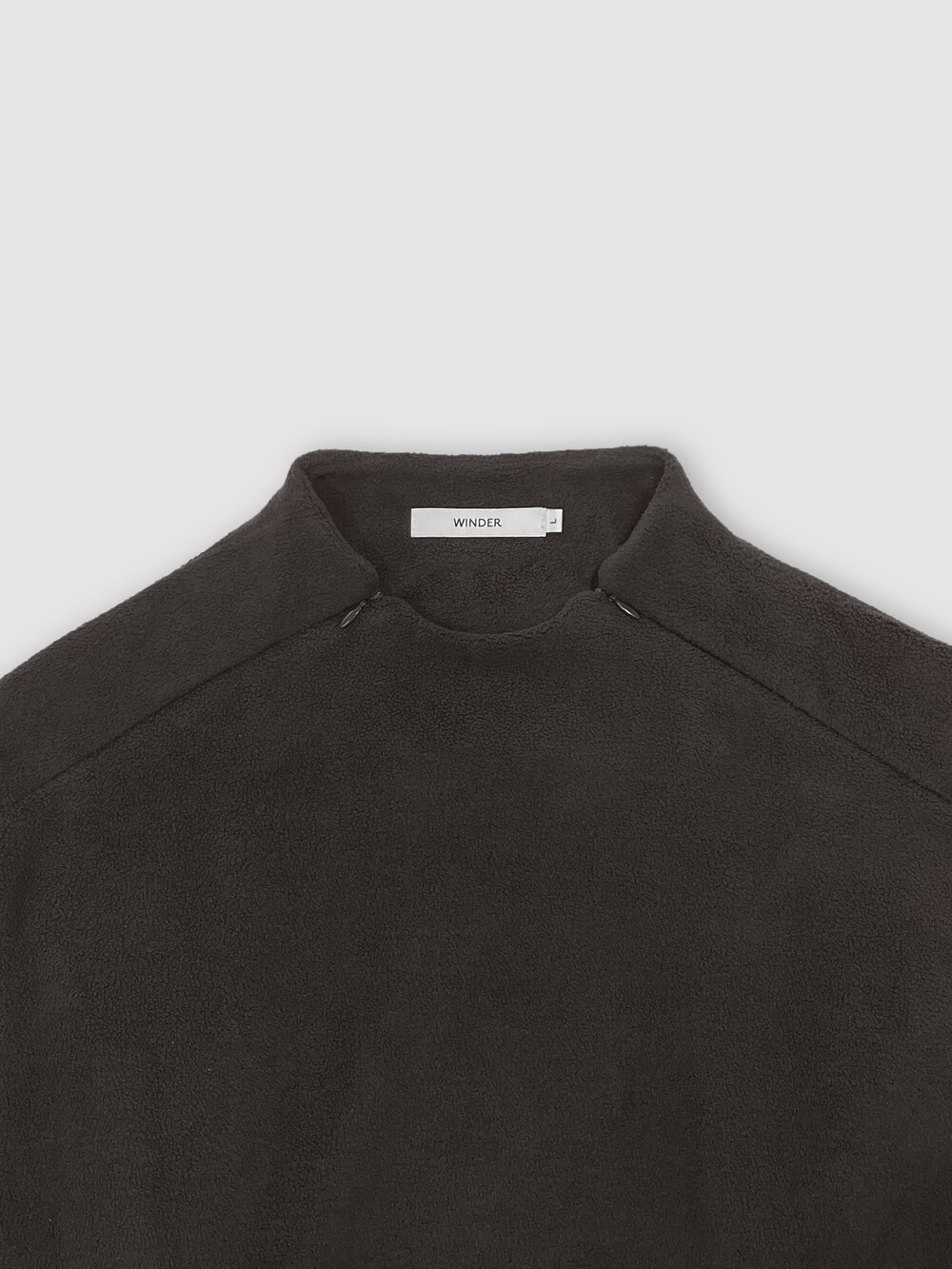 BLOCKING FLEECE PULL-OVER TOP - CHARCOAL BROWN