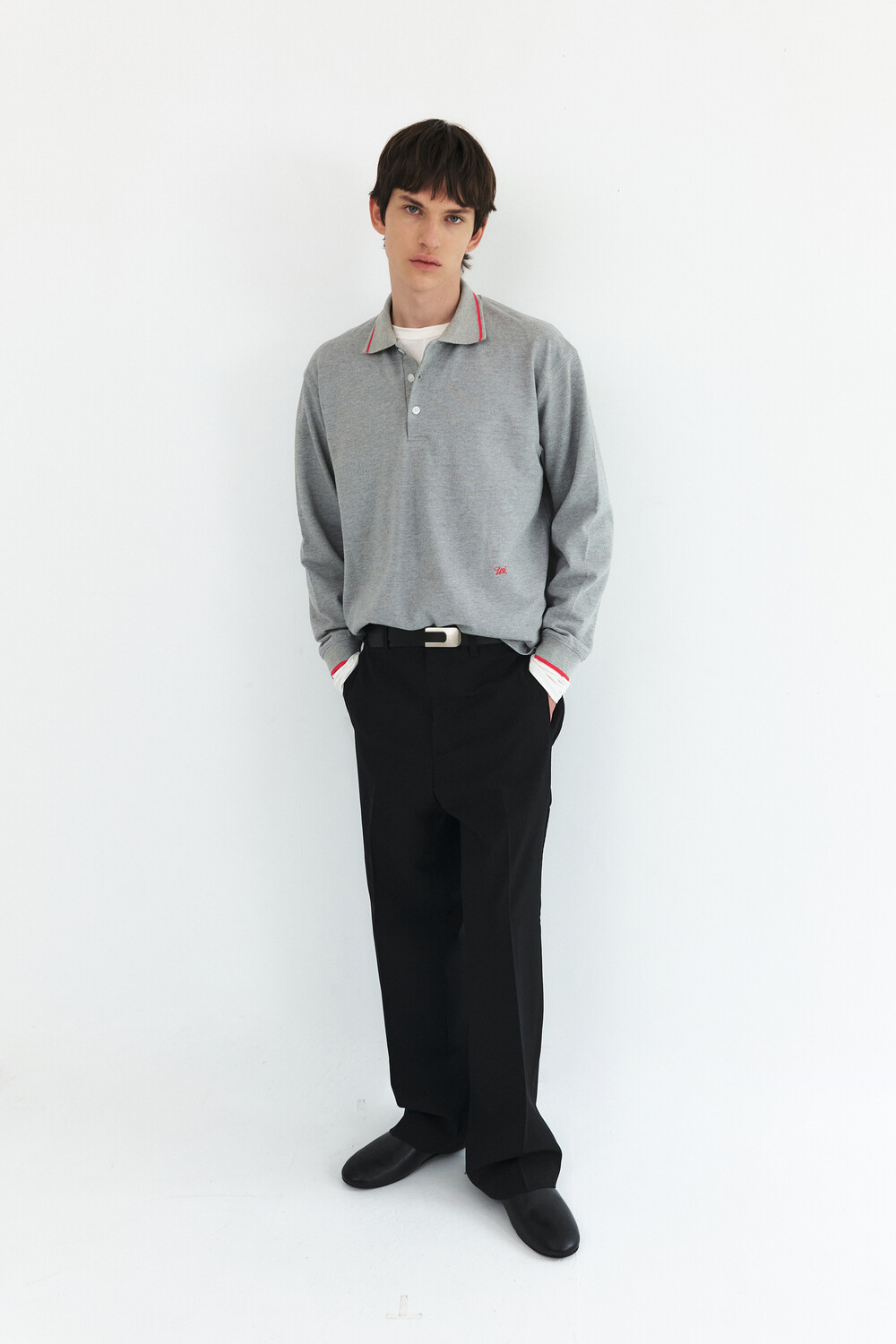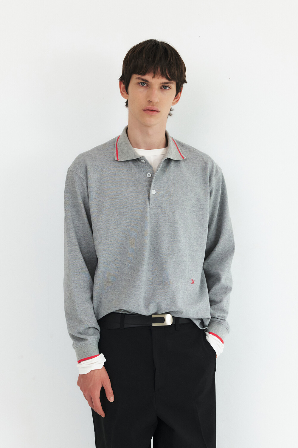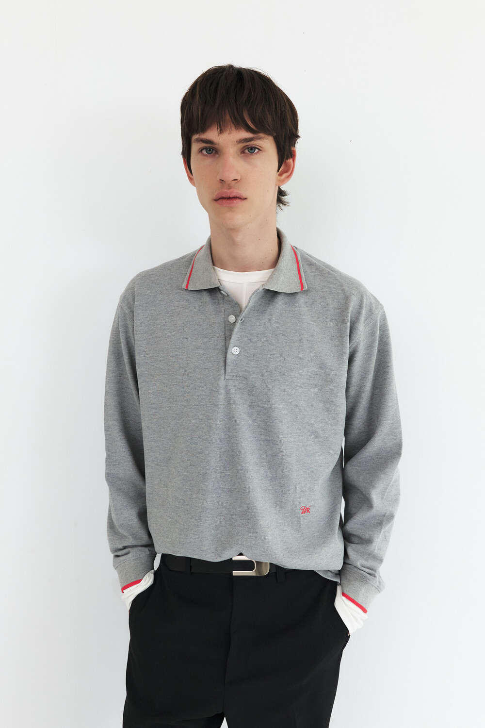 TIPPED COTTON PIQUE POLO - MELANGE GREY