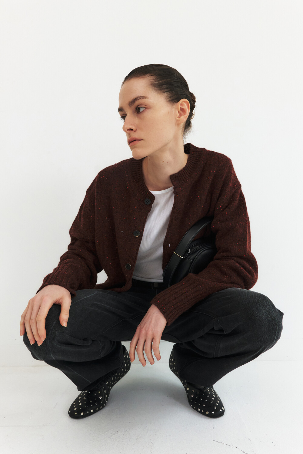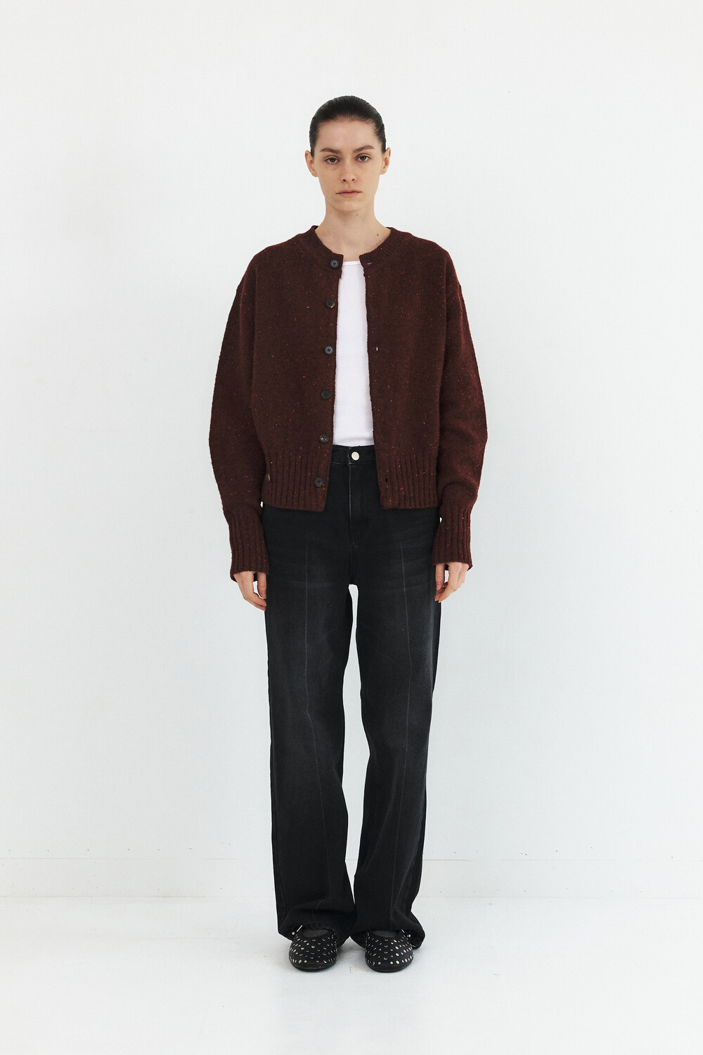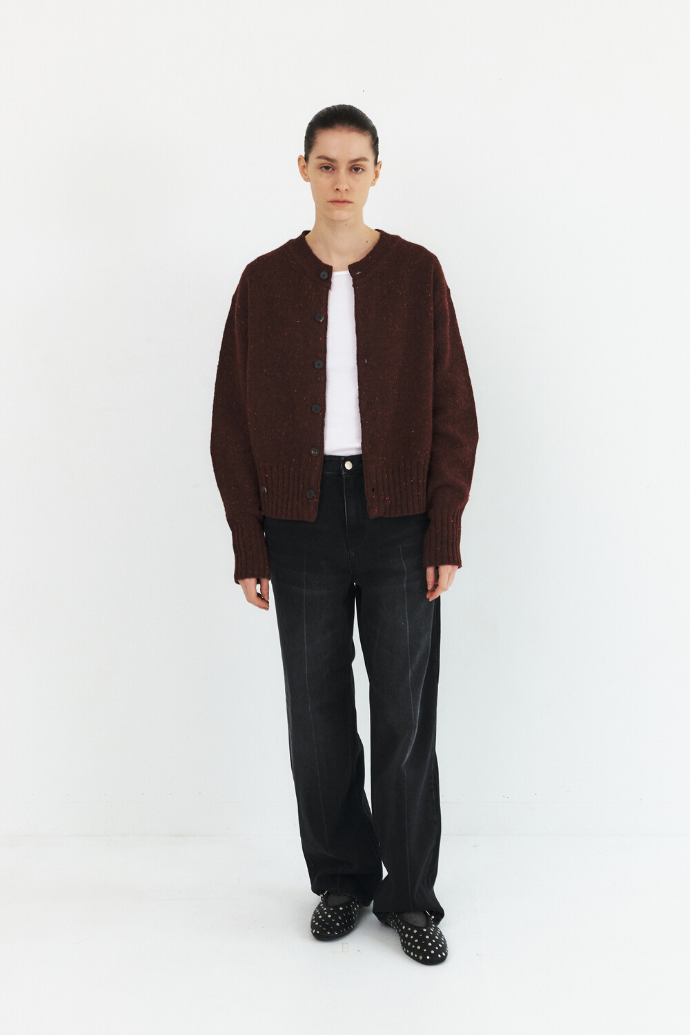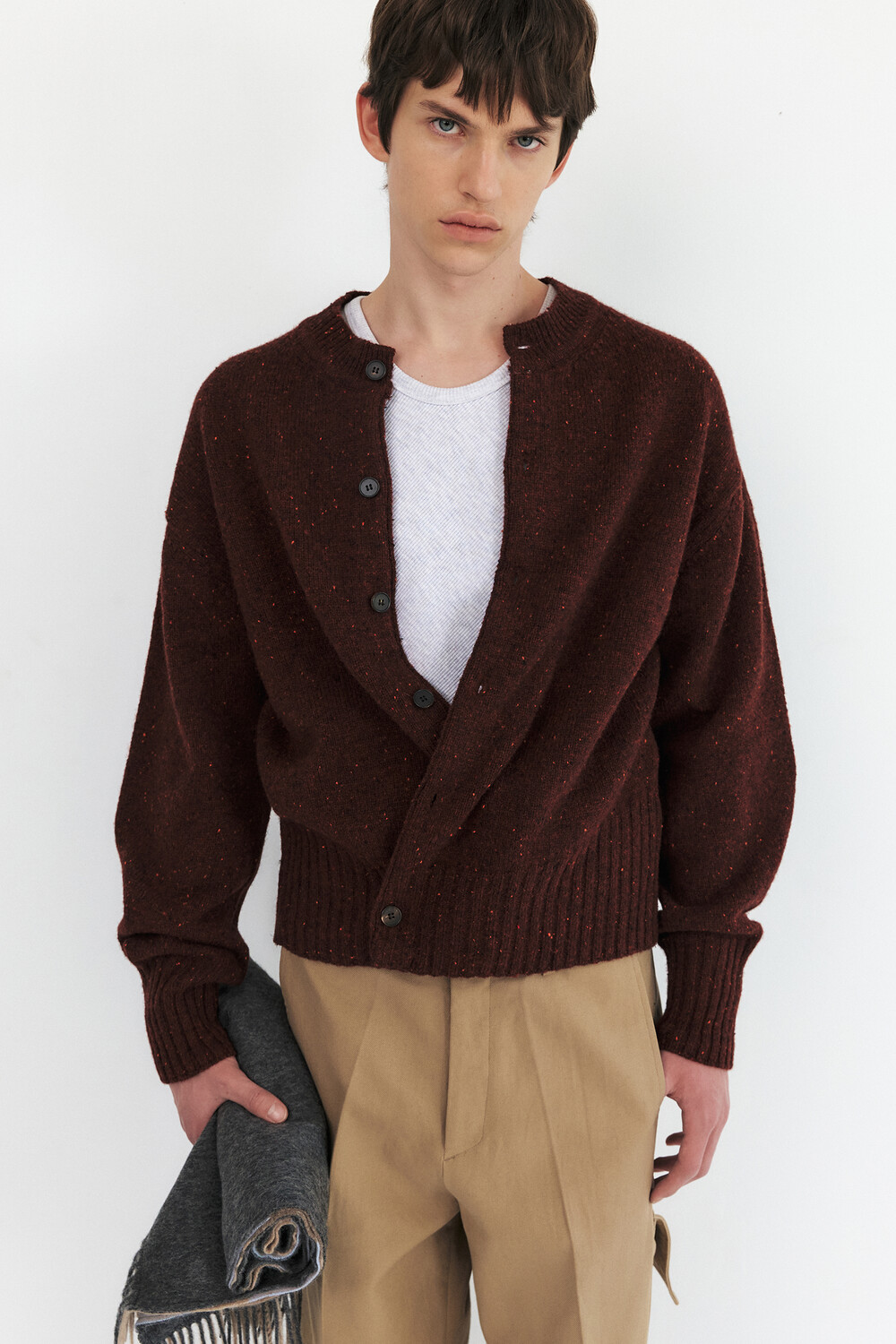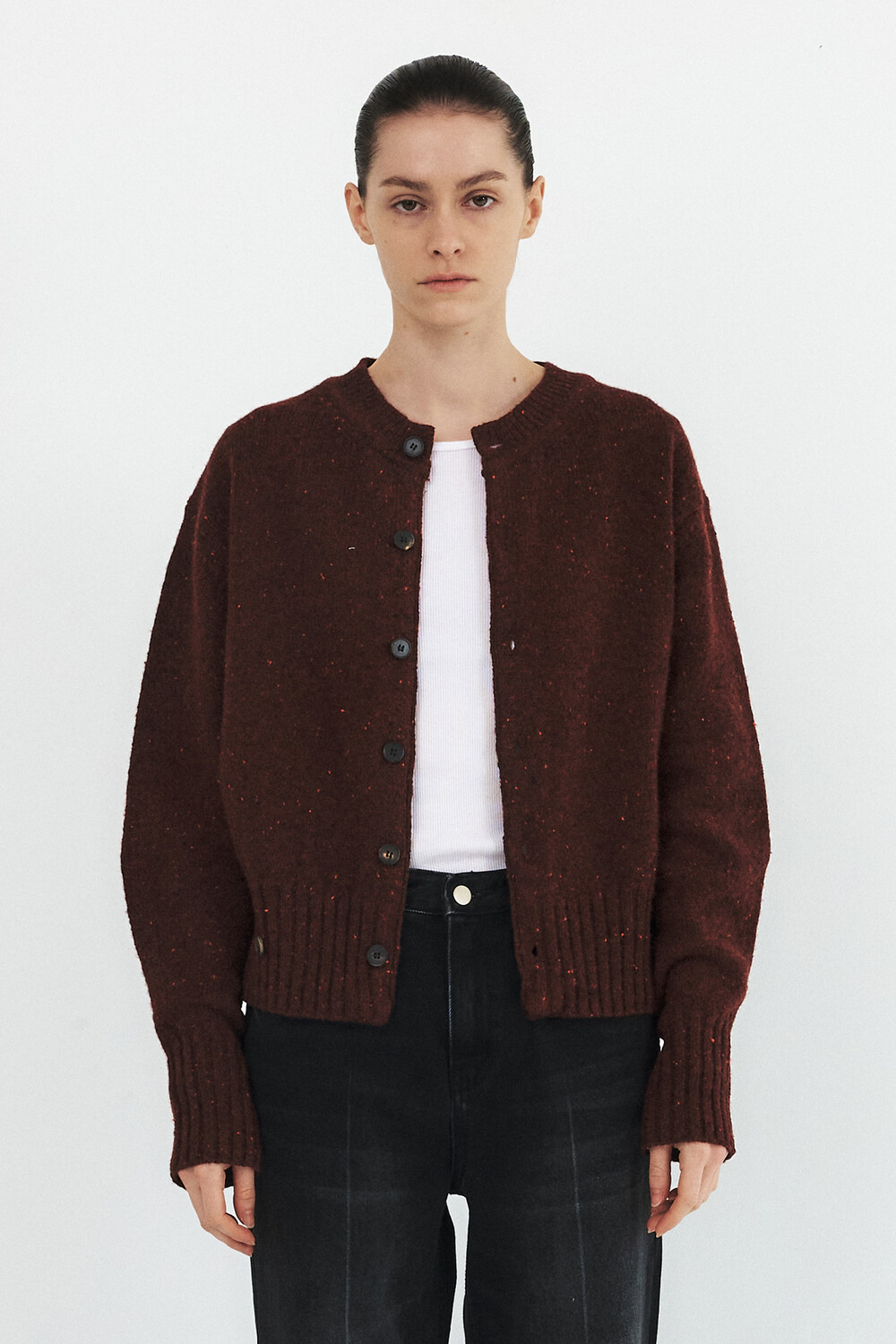 MODIFIED WOOL ROUND CARDIGAN - BRICK RED (W)