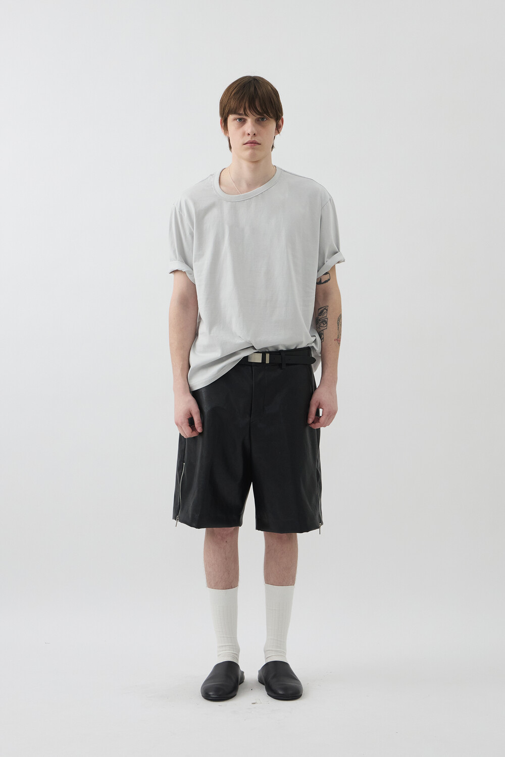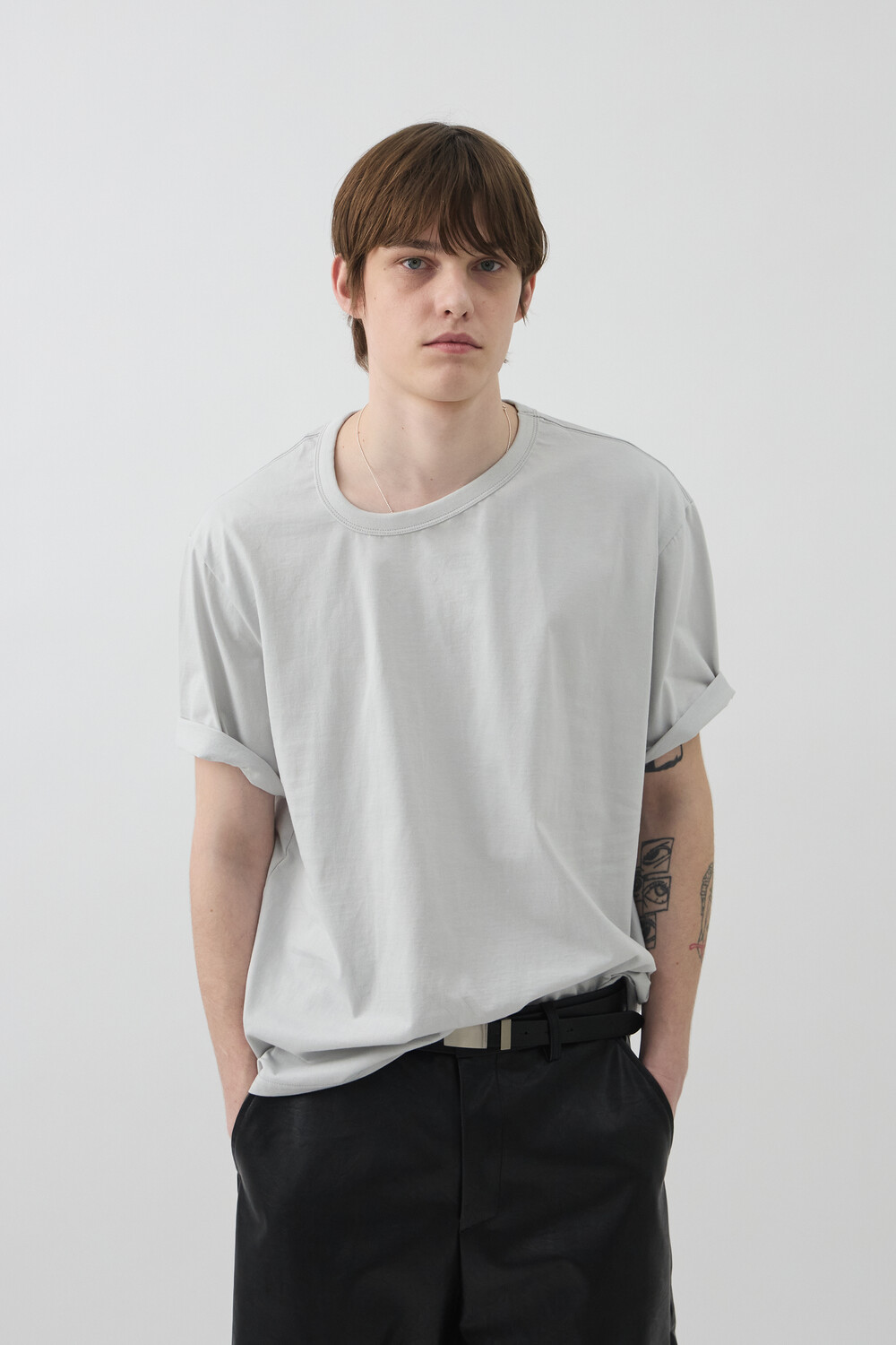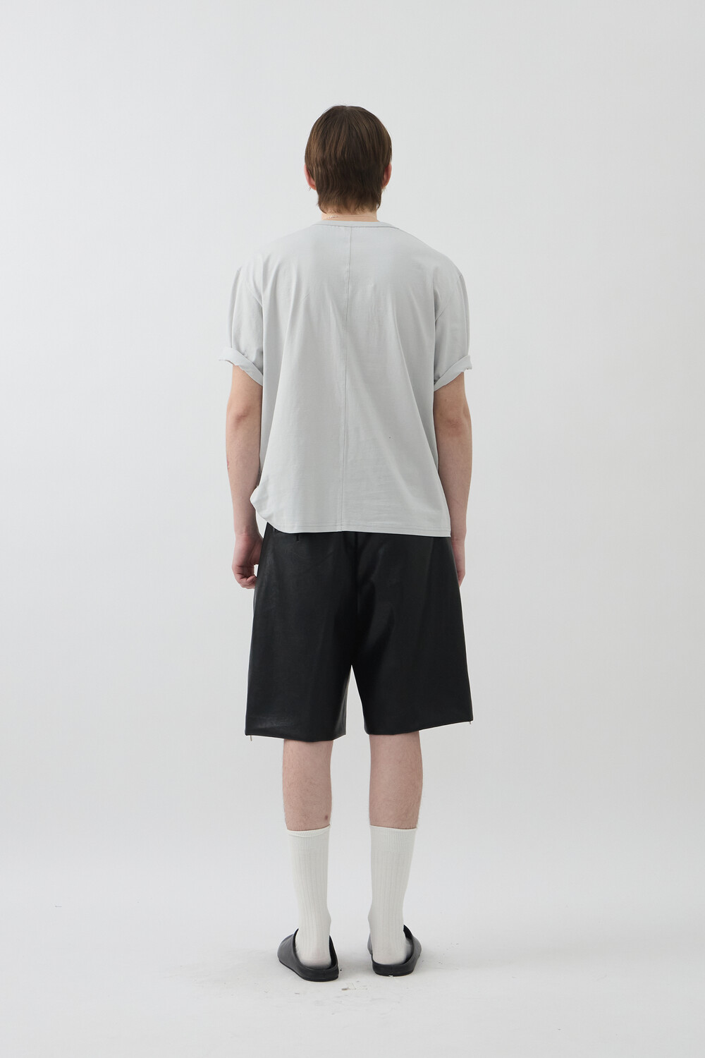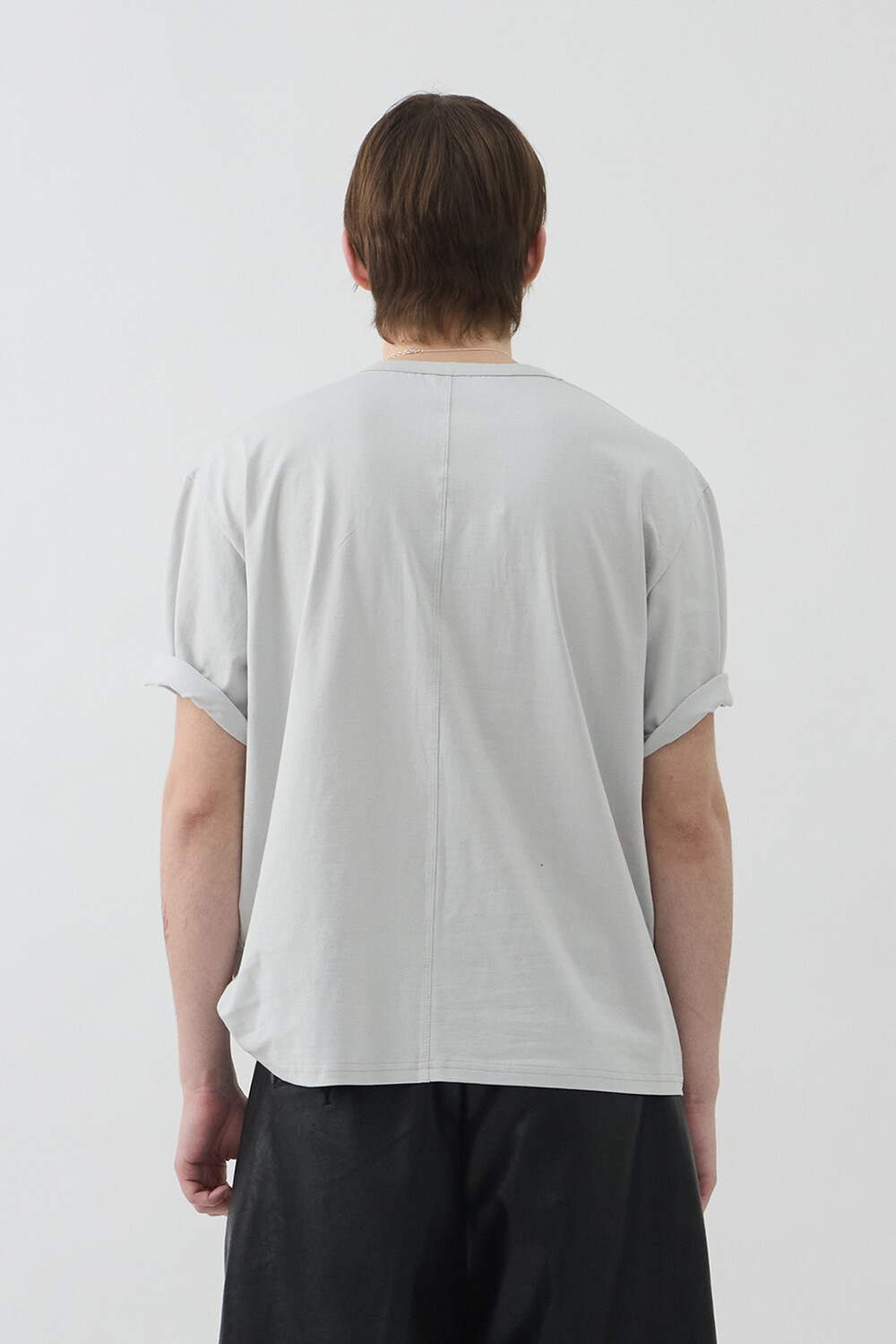 UNBALANCED NECK SHORT TOP - LIGHT GERY